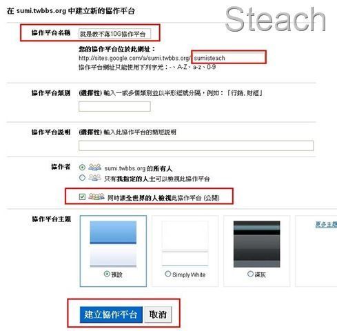 協作平台:http://sites.google.com/a/sumi.twbbs.org(google+域名)