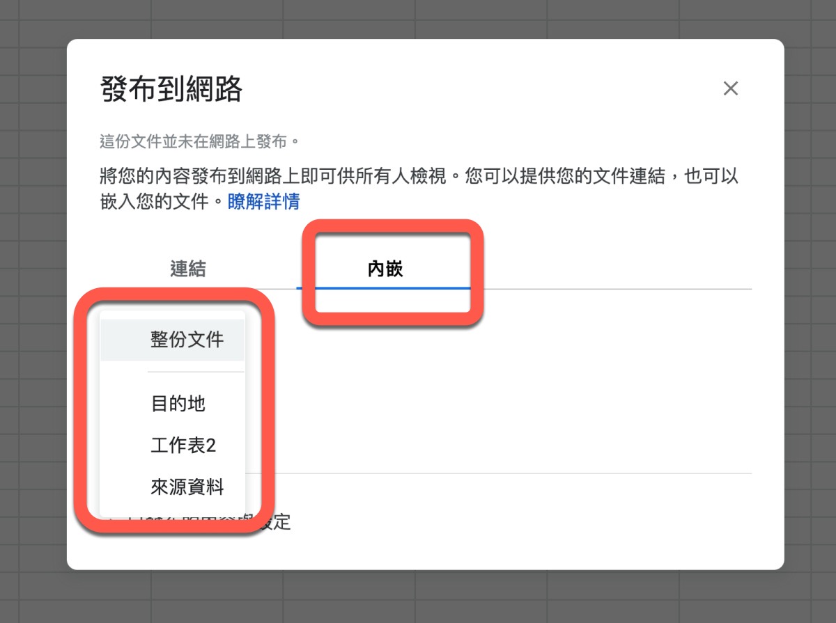 在想要嵌入的 Google 試算表點擊左上角的「檔案」。