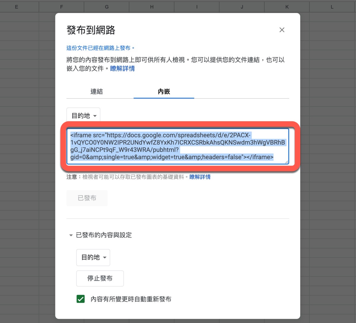 然後就可以取得網頁的內嵌代碼了,然後就複製到網頁上去嵌入吧。