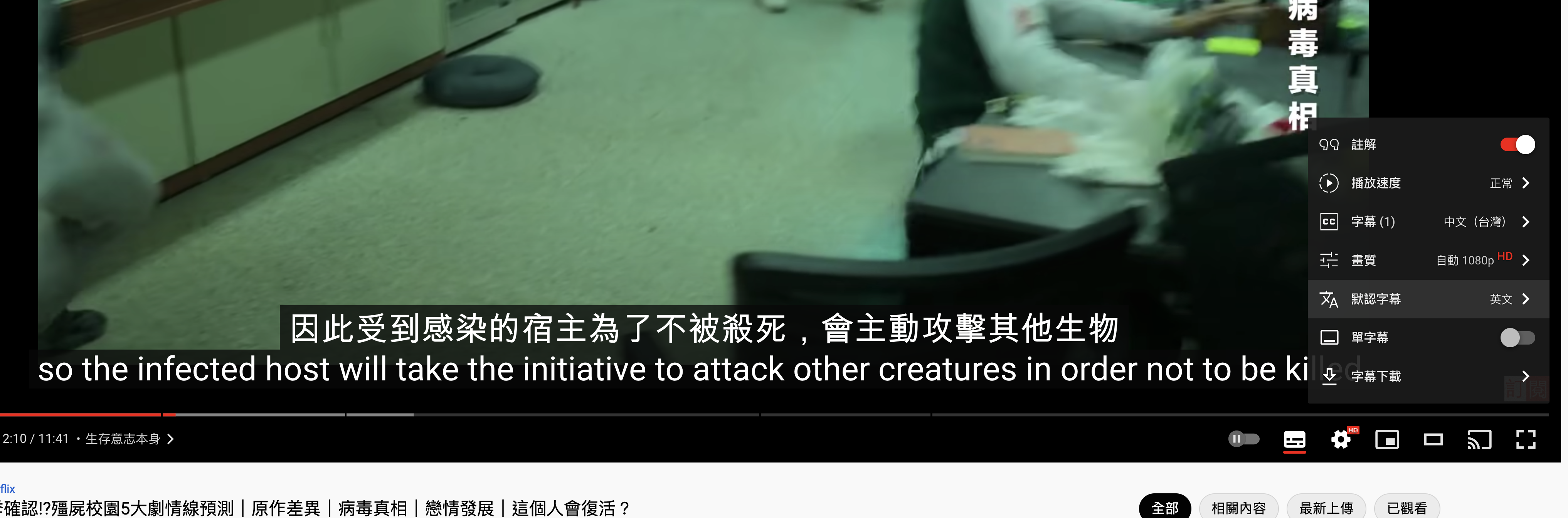 接下來就可以到想看的 YouTube 影片,打開原本的字幕。