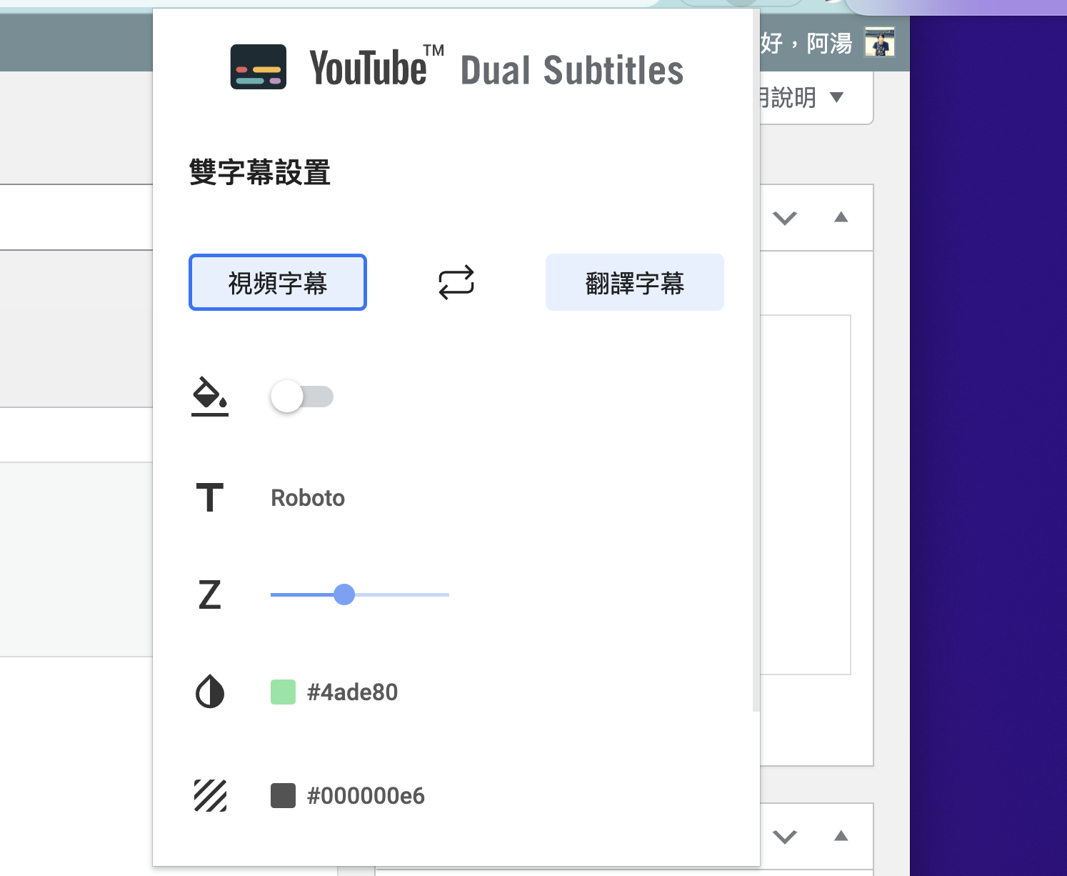 另外也可以針對字幕調整顏色、背景等,讓你看的更加舒適,快去試試看吧。