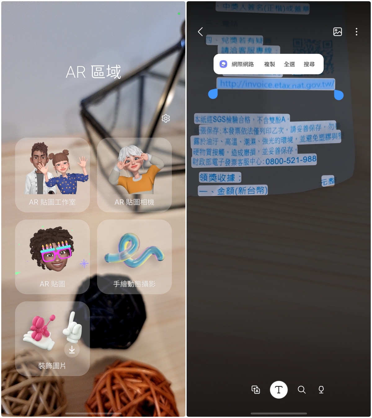 而 AR 區域中也有很多有趣的功能像是 AR 貼圖工作室、AR 貼圖相機、AR 貼圖、手繪動態攝影等,其實 Samsung 都慢慢的將一些原本旗艦才有的功能下放,讓更多 Samsung 手機的使用者都能享有更多實用的功能。