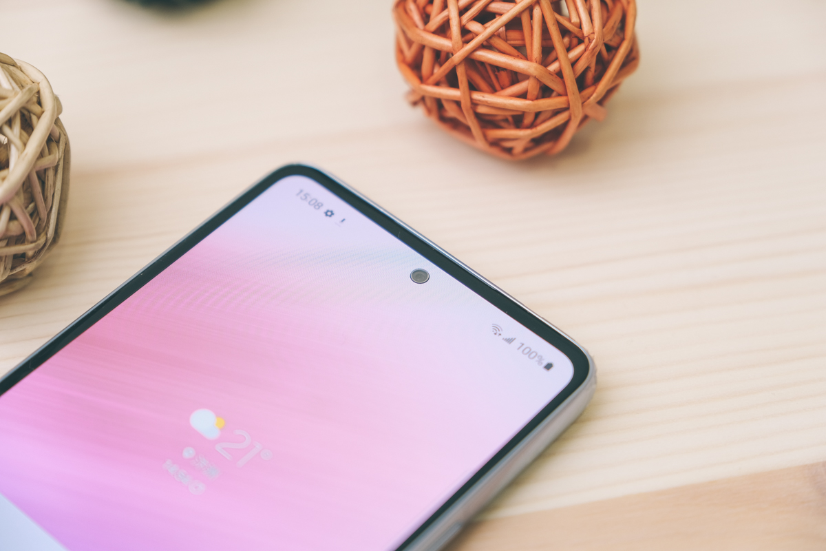 上方的前置相機採用 3200 萬像素 F2.2 光圈的鏡頭,透過螢幕開孔的設計讓螢幕佔比達到極致。