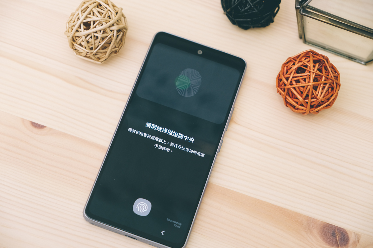 支援螢幕下指紋辨識技術,不過不論什麼指紋辨識對阿湯作用不大,因為太長期在攀岩,只要每次去運動回來指紋就磨掉大半,很常會解鎖失敗,但通常休息後隔天就可以了,所以阿湯大多是使用臉部辨識,Galaxy A53 5G 這二者都有支援,解鎖方式由你決定。