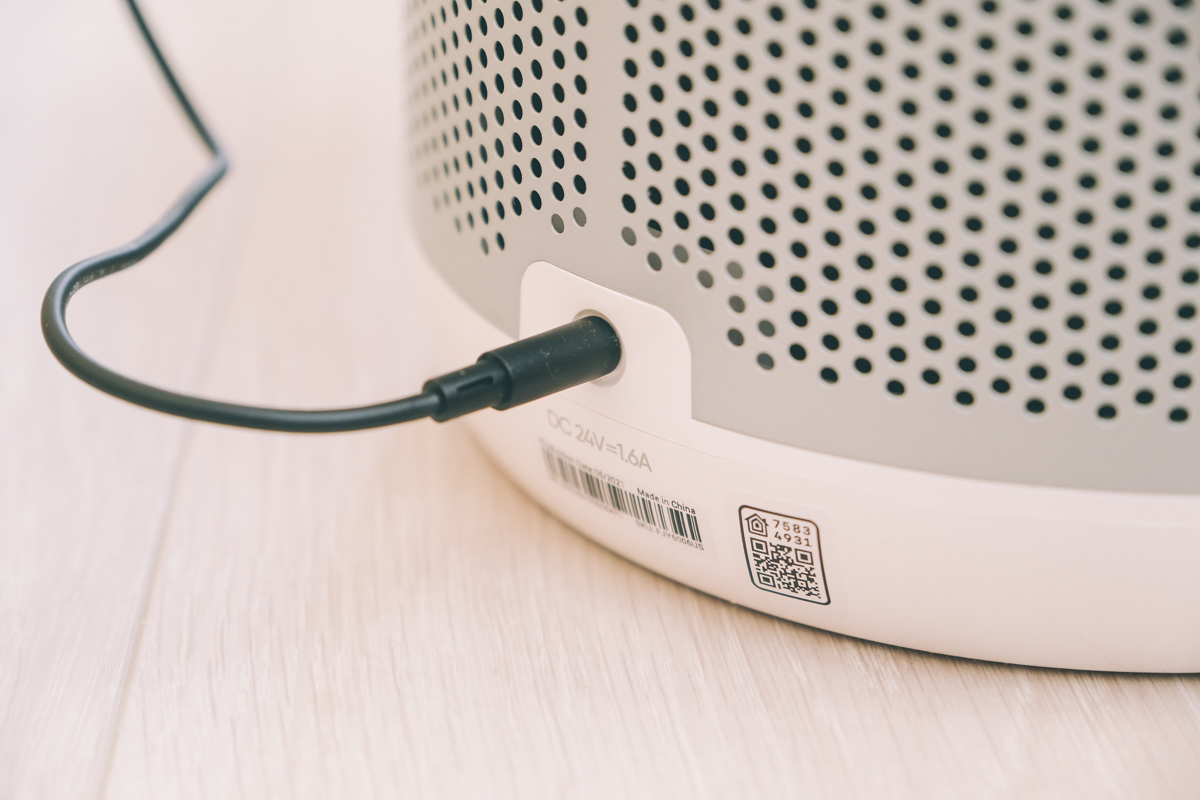 後方也採用了更小的充電埠,很多空淨機都是將變壓器做在空淨機內部,因此也會增加一些重量、體積,電線所需要的粗細也會有差異,而 SmartMi P1 則是將變壓器直接做在插頭上,縮小了機內所需體積,線材更細也更好藏線及收納。