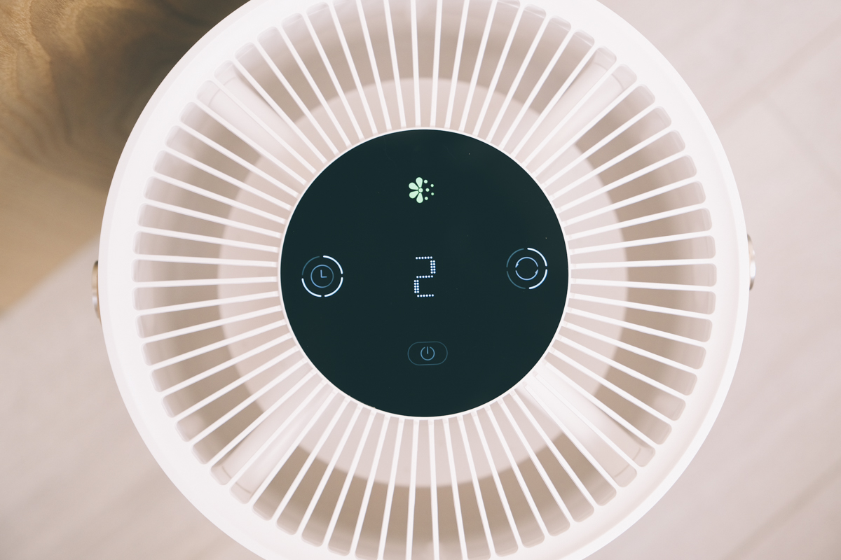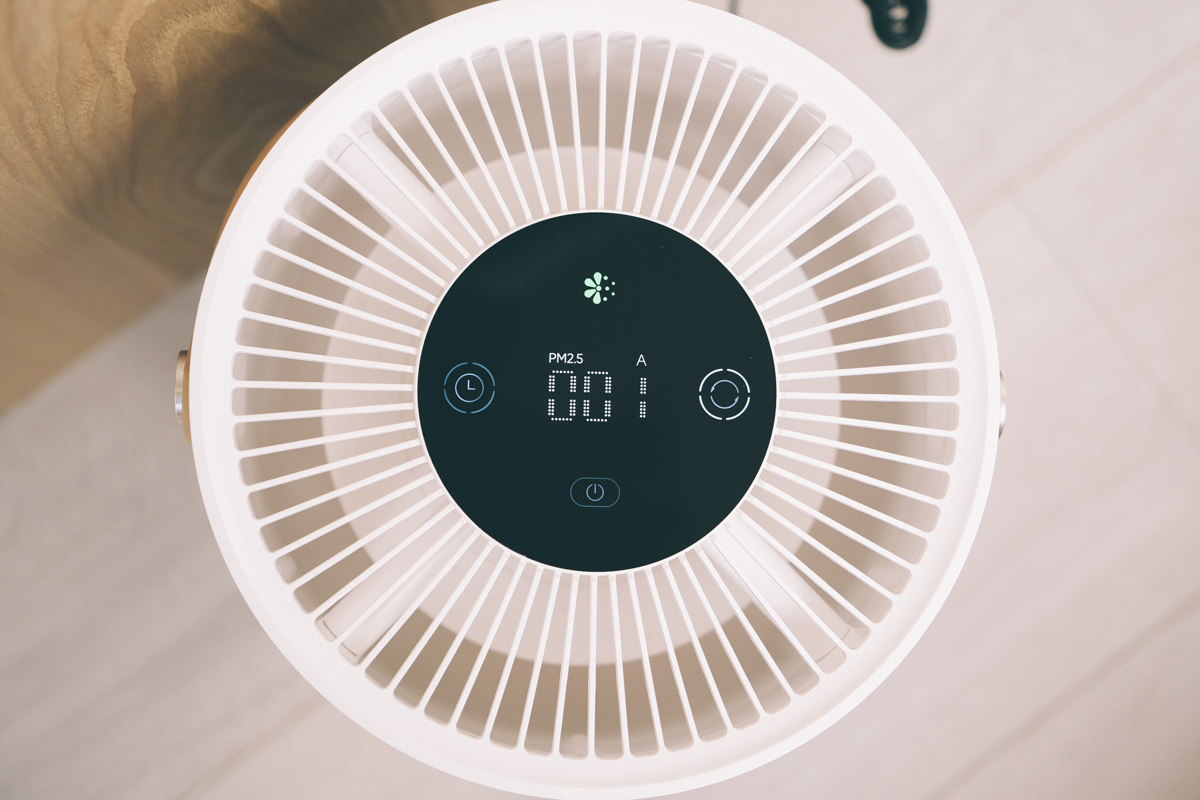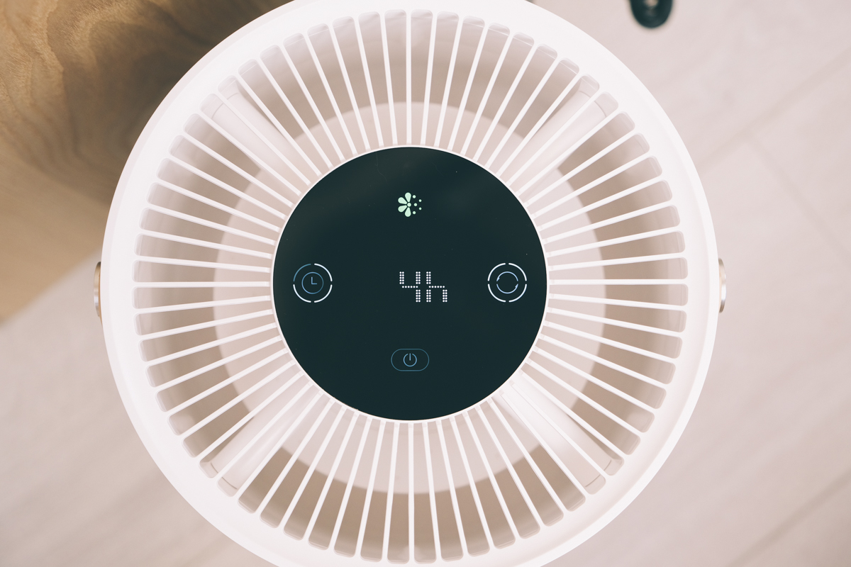 採用 OLED 顯示面板,面板上就可以操控大部份的功能,包括定時、風量以及開關,在面板上也會以四種燈號顯示目前的空氣品質,分別是: