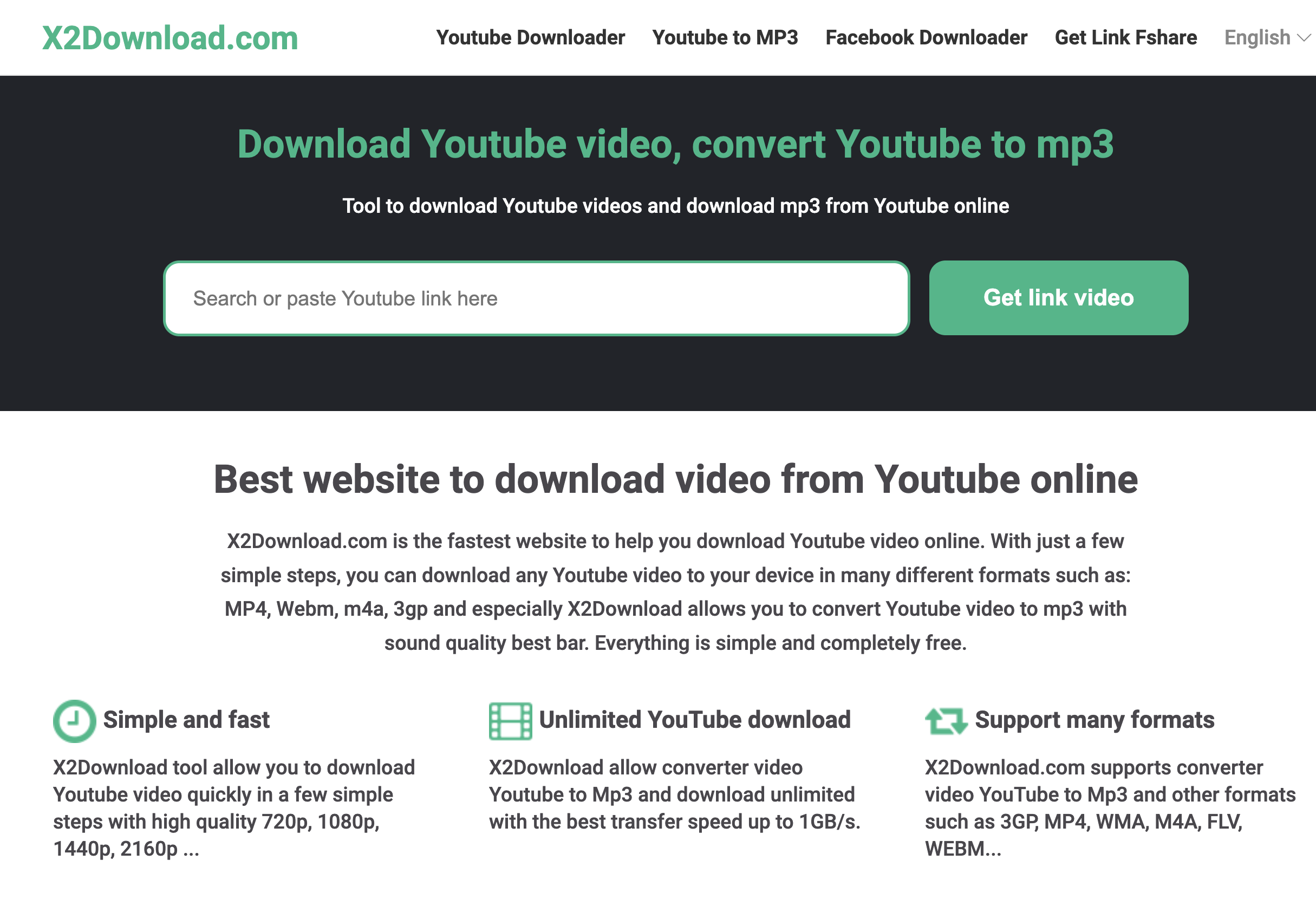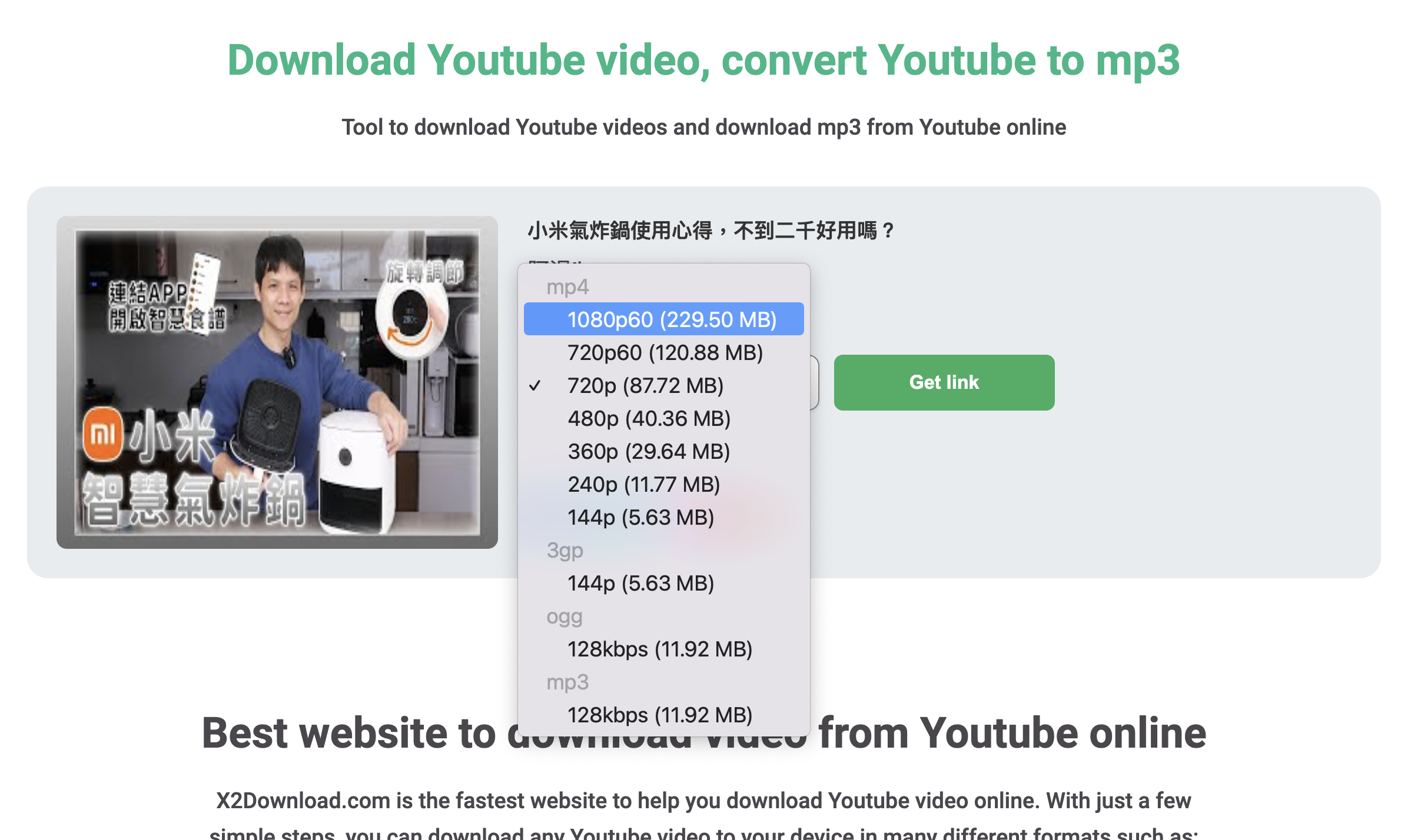 網站:https://x2download.com/進入網站後,直接貼上要下載的 YouTube 連結後就可以按下 Get Link Video。