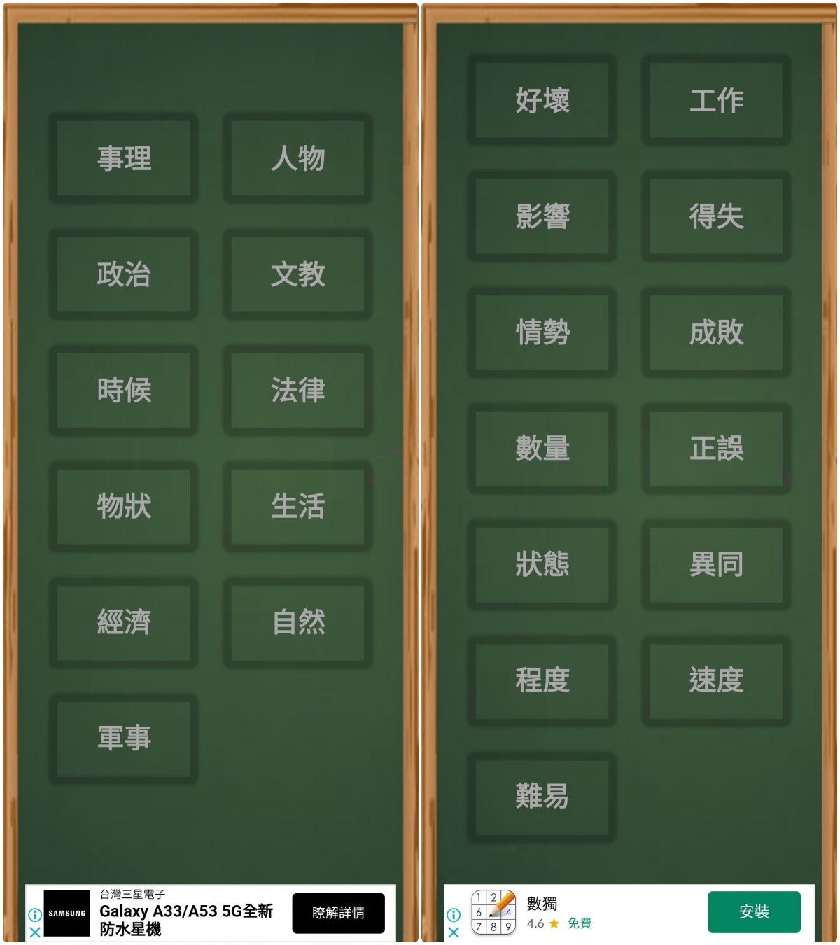 下載:Android這款沒有 iOS 版本,比較類似的有這款,有需要可以去下載。 進入 APP 後,主要就依關鍵字跟類別來找成語,關鍵字的話,輸入任何一個字,就會列出包括這關鍵字的所有成語。