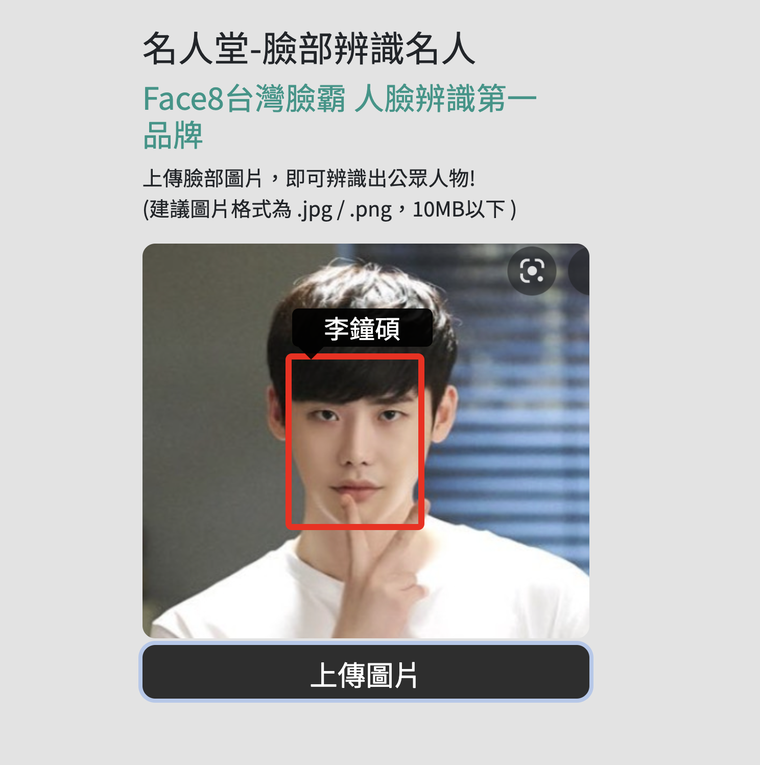 網站:https://face8.ai/faceMaster進入網站後,沒有什麼要操作的,點擊上傳圖片,直接上傳。
