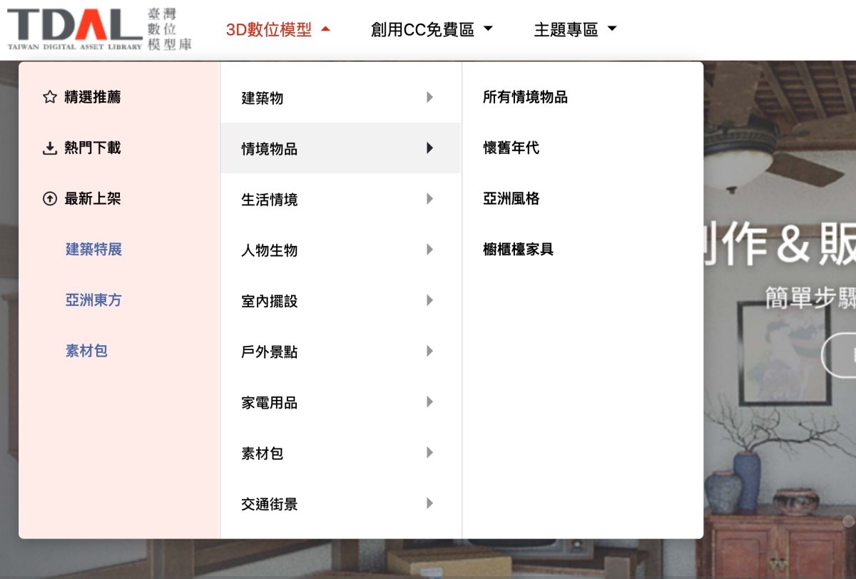 付費的部份,在 3D 收位模型裡有非常多類別可以選擇。