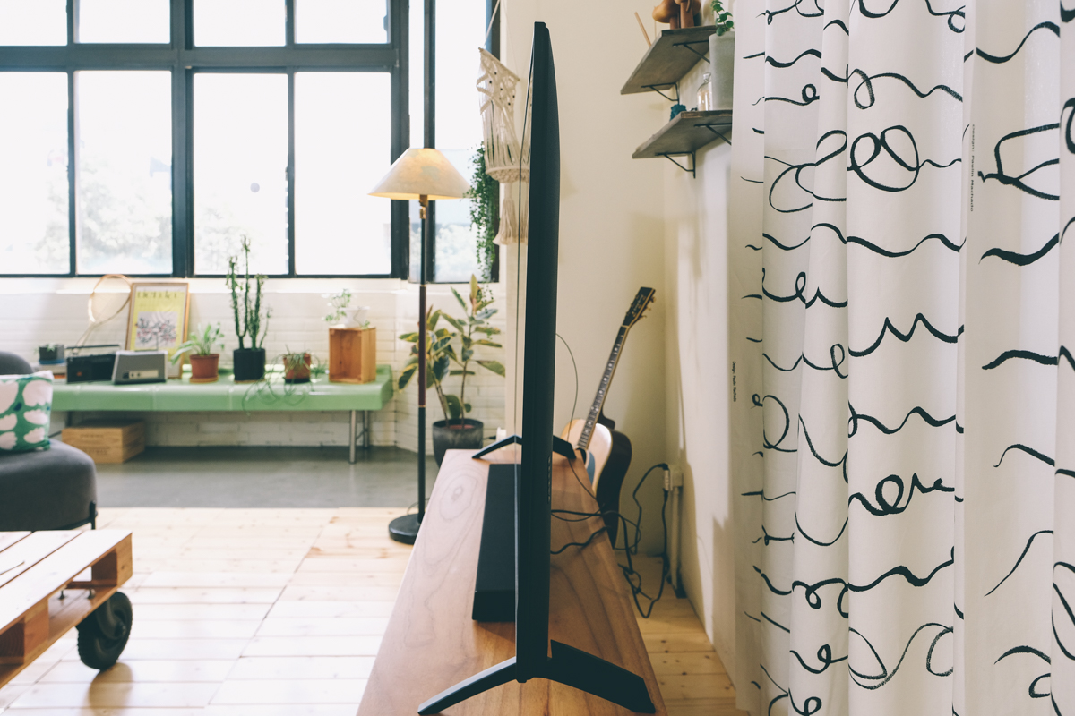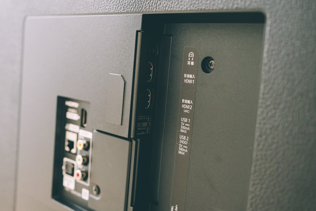 支援壁掛安裝,後面有四顆螺絲鎖孔,是用來將電視鎖上壁掛架使用,阿湯自己目前家中也是採用壁掛的方式,可以節省不少空間。