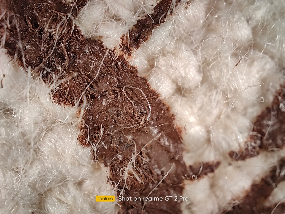 搭載雙主鏡頭,分別是 5000 萬像素、F1.8 光圈,以及 5000 萬像素、F2.2 光圈的 150° 超廣角鏡頭,在最大廣角下就是變成了魚眼鏡頭,而第三顆鏡頭並不是遠焦,而是搭配了 40倍顯微鏡鏡頭,預設情況下為 20 倍放大,最高可以支援到 40 倍,這個也很好玩。