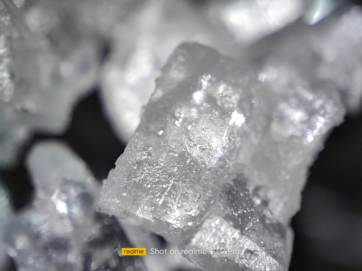 既然有這麼強大的顯微鏡鏡頭,就簡單的先拍一些微距的畫面,像第一張這個是冰糖,放在玻璃杯上用光照後拍攝,變的好特別。