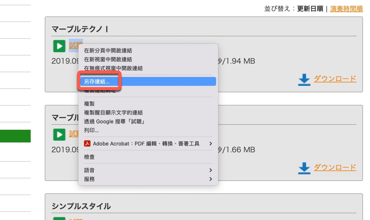先講一下下載的部份,可以直接在試聽右鍵,另存連結,就能儲存。