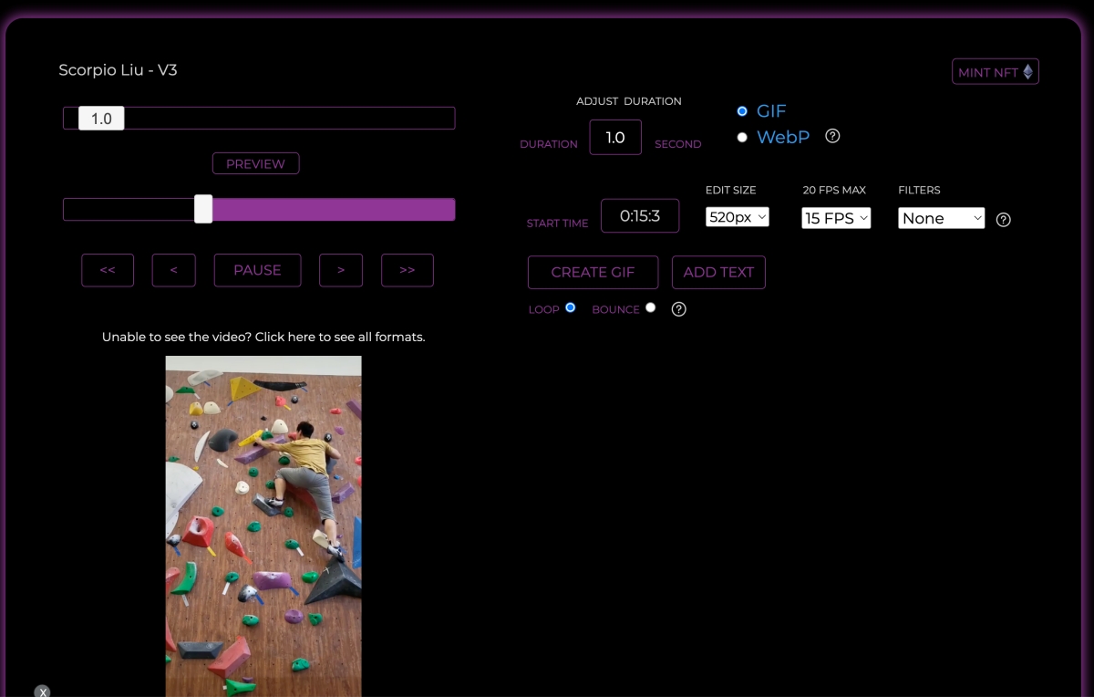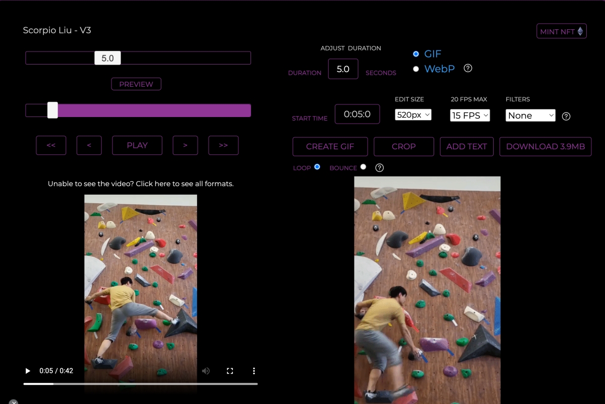 阿湯也將將自己攀岩的影片擷取成 5 秒的 GIF 檔案給大家看看,相當方便的線上工具。