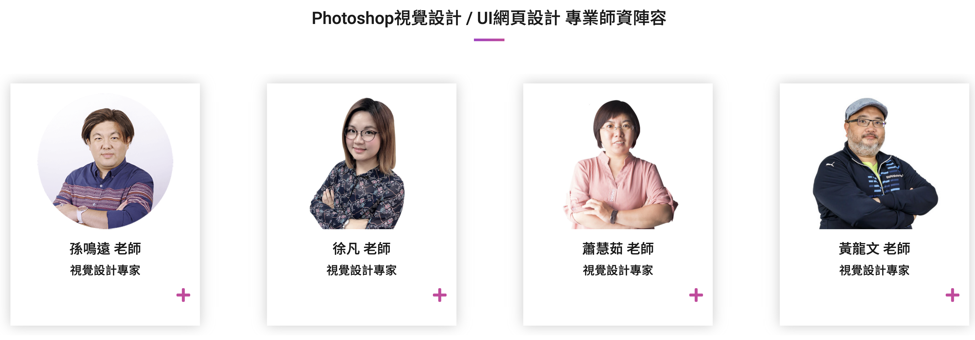 師資包括了孫鳴遠老師、徐凡老師、蕭慧茹老師、黃龍文老師,都是實力堅強,且在實務經驗豐富的老師,讓你不只是學習,更能幫你解惑各種疑難雜症(很多所謂的老師,只能教授技巧、但缺乏實務,你就只能學一半了)。