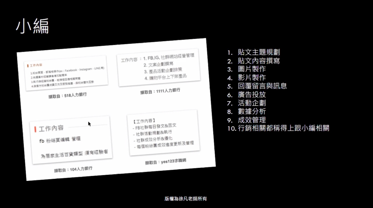 像現在最常見的職務,就是美術設計或是小編,因為網路產業真的很熱門,特別是現在這疫情時代,網路行銷又變得更加的重要,所以你需要學會的,不僅僅是單純的會設計,而是要「懂」設計,透過與客戶的溝通、討論,資料反覆調查蒐集後,才能有更好的創意發想,真正能達到需求的設計內容。