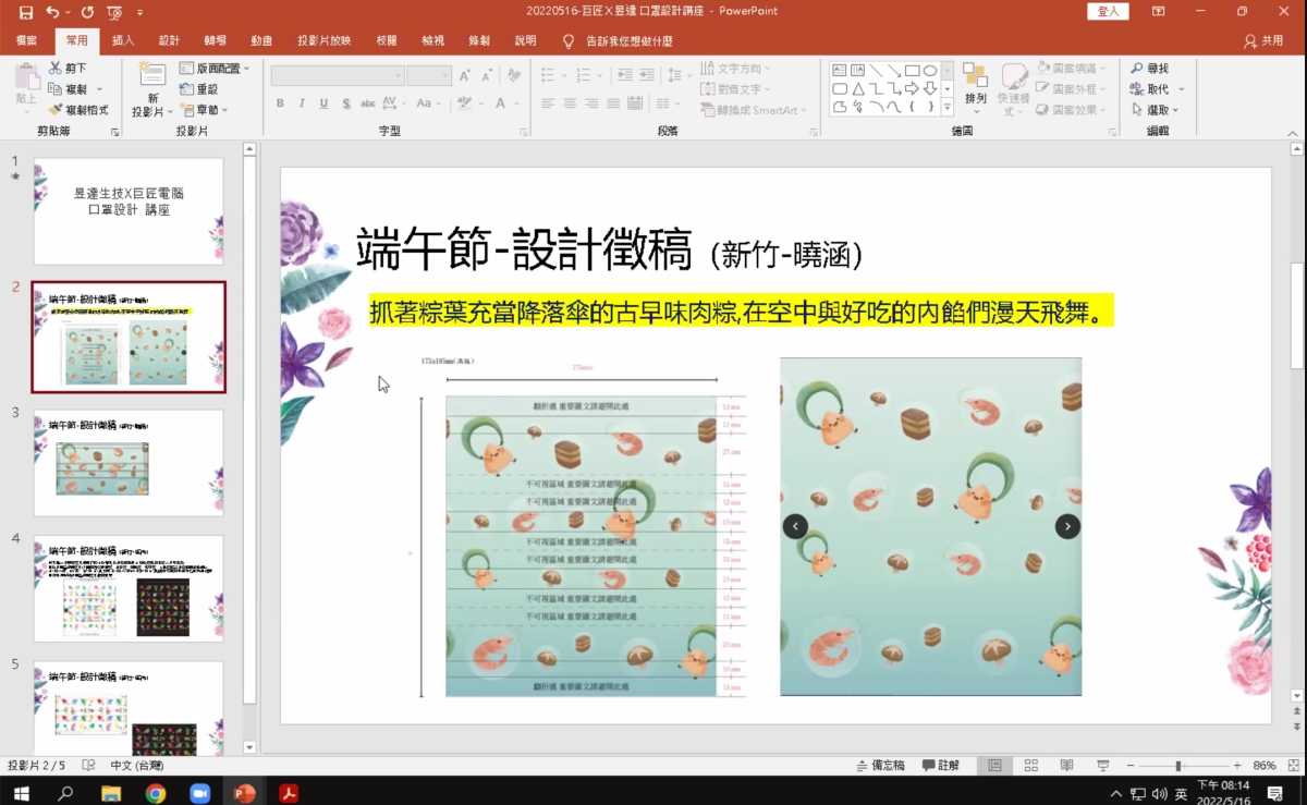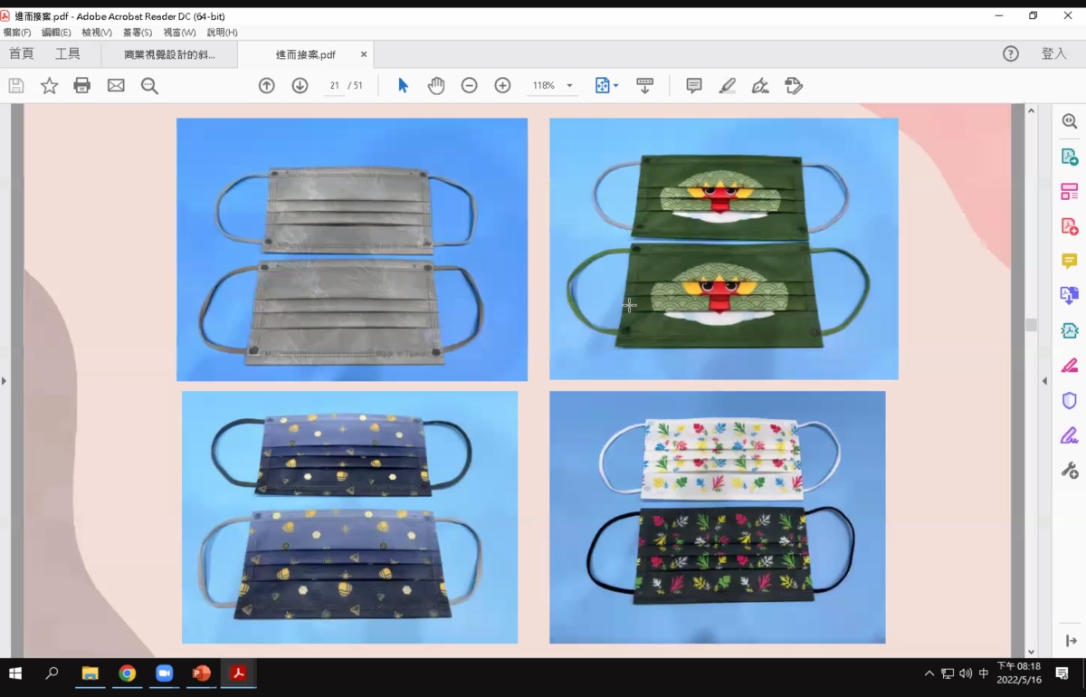 像近期巨匠電腦就與昱達生技合作口罩設計,學生在這門課程中,學習後將設計運用在口罩設計上,如果設計被選上的話,就會被製作成口罩並在通路上銷售。