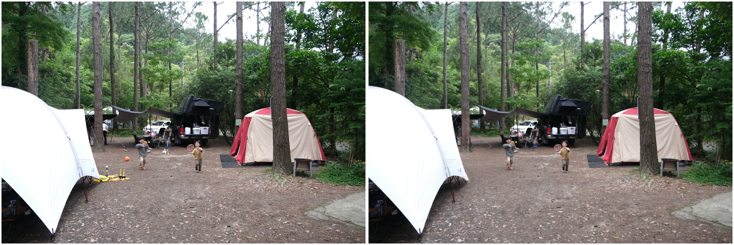 三二下就去掉了地上玩具、狗狗還有背景的路人甲,如果不給比對圖的話,真的應該是看不出來吧。