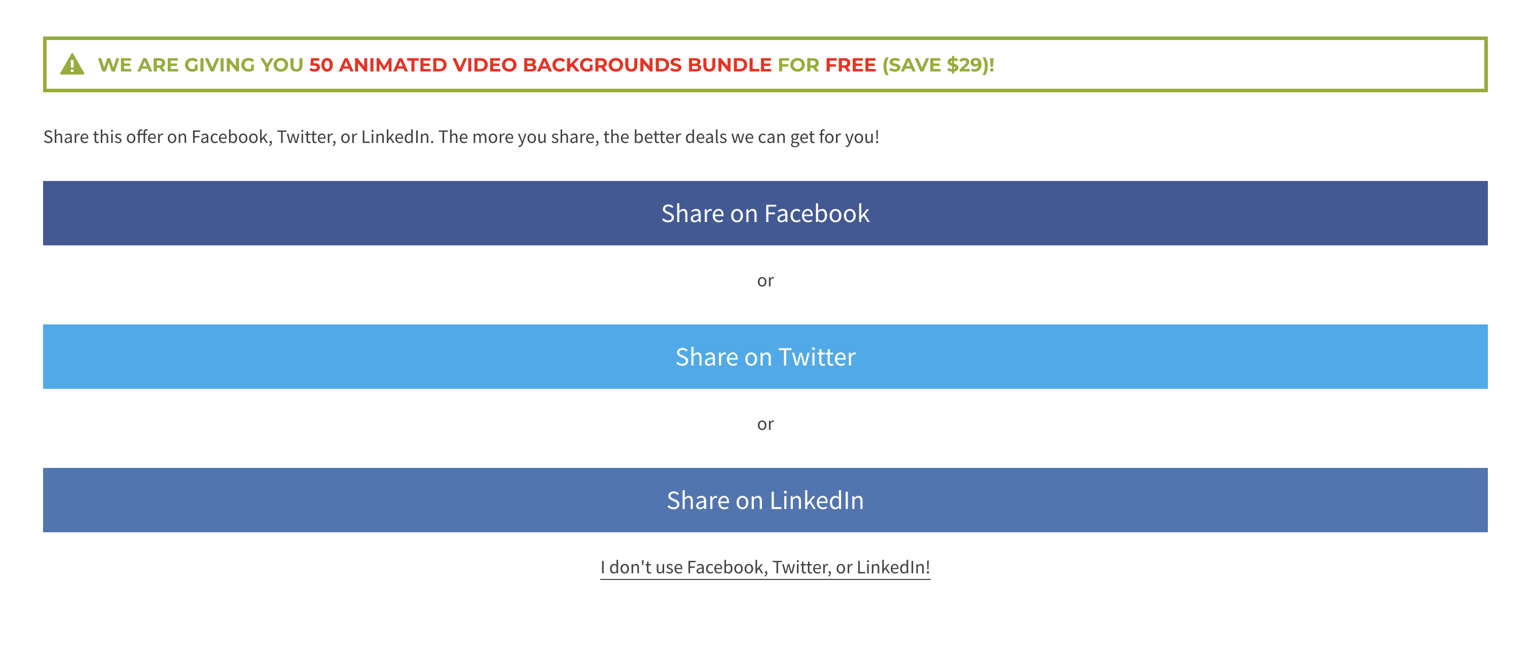 這邊呢,可以直接選最小面有個很小字的,I don't use Facebook,Twitter, or Linkedln!,這樣就可以不用留下任何真實資料。