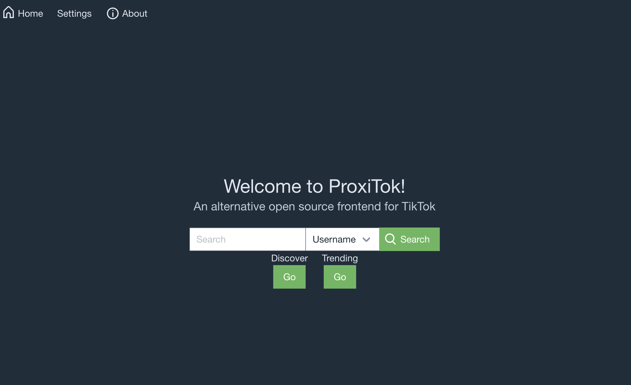 網站:https://proxitok.pussthecat.org/進入網站後,可以搜尋的方式有四種,包括 Username、Tag、Music ID、Video ID,輸入後直接搜尋就可以瀏覽。