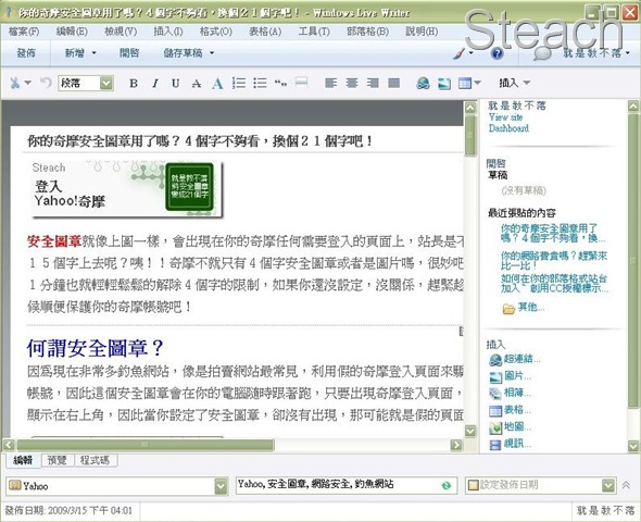 因此總結以上言論,不管你有沒有事先儲存草稿在本機,最好常常備份我的文件夾裡的My Weblog Posts整個資料夾,這樣就萬無一失囉!就算是網站文章消失了,你也不用擔心,輕輕鬆鬆就救回來。
