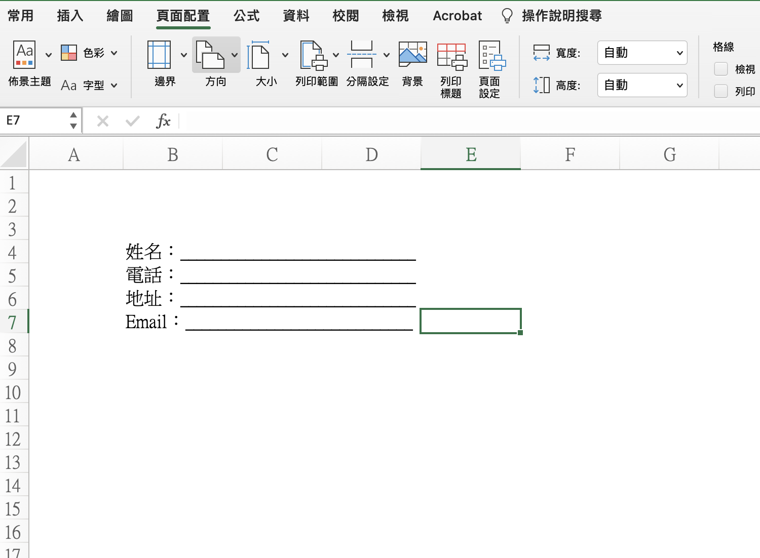 Excel 小技巧,如何在表格自動填入下底線?