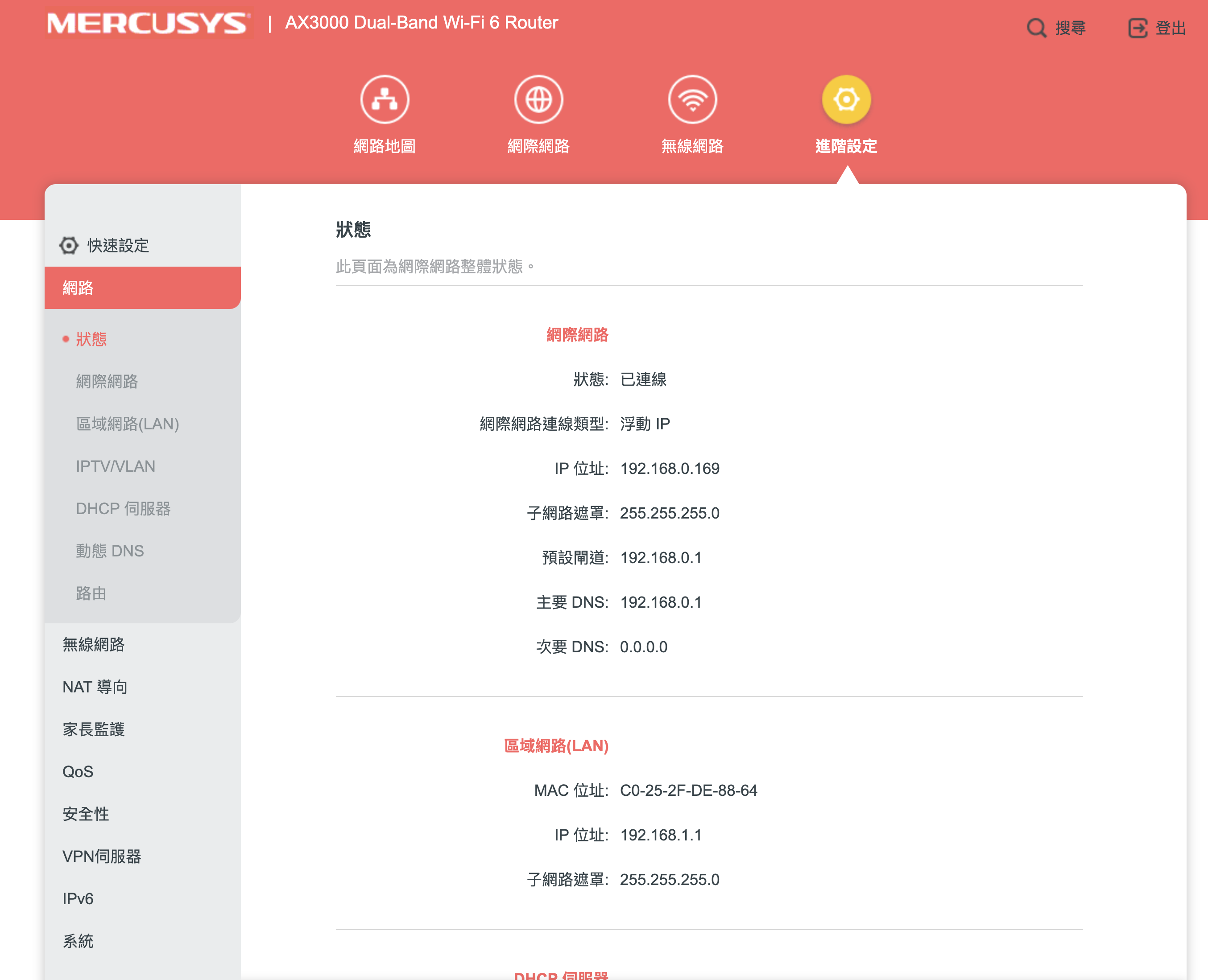 進階設定中則是還有更多常用的路由器功能,包括 NAT 導向、DDNS、家長監護、QoS、VPN 伺服器等,應有儘有,功能其實非常完善。