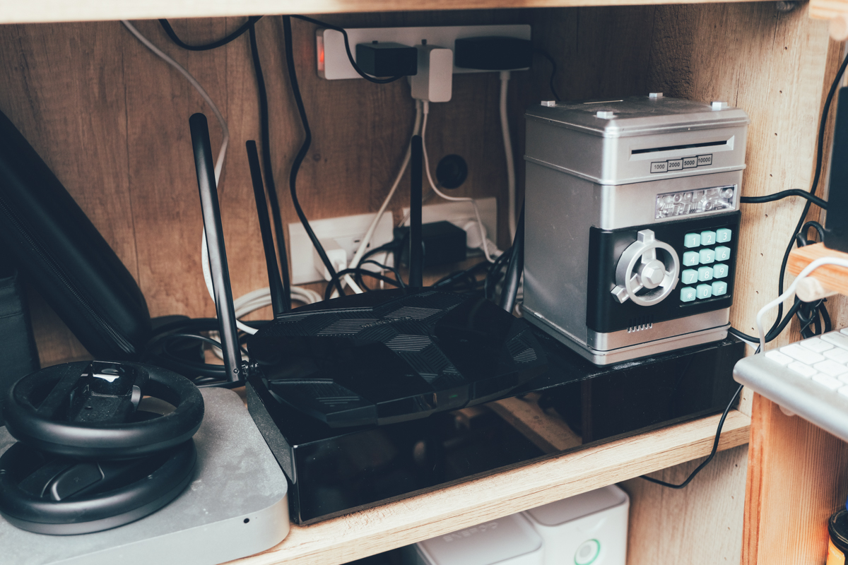 後陽台也是經過重重的關卡才到達的地方,和外玄關一樣,速度不快,但穩定的維持一定的網路速度,可以讓我使用自動貓砂機、自動餵食器等裝置。