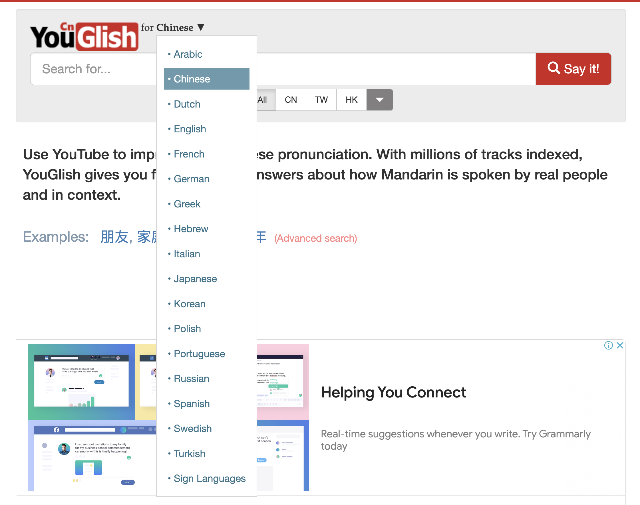 YouGlish - 從 YouTube 學習文字的唸法