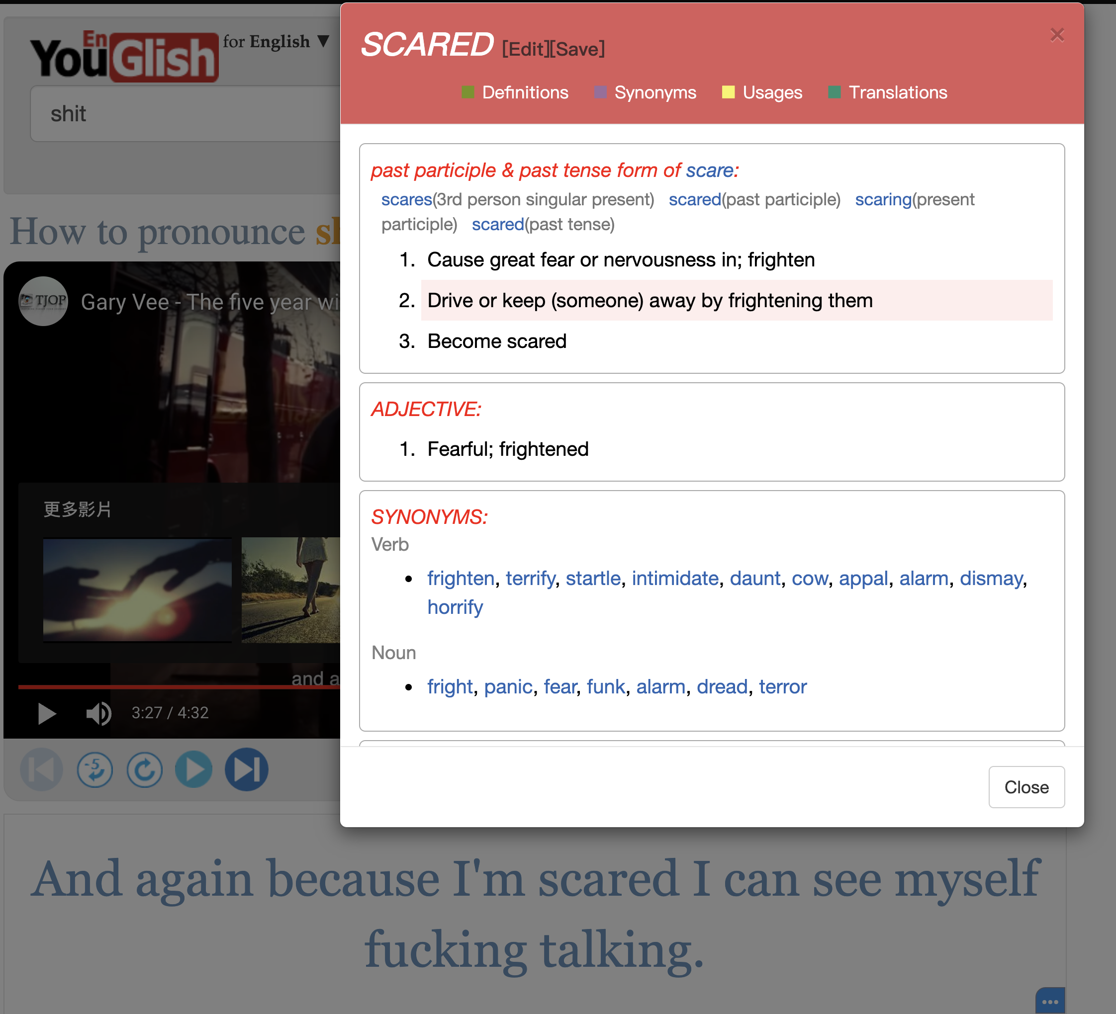 如果你對於字幕上有什麼字不了解的話,只要點擊該單字還有英英字典可以查看哦,對於學語言真的是很方便的工具啊。