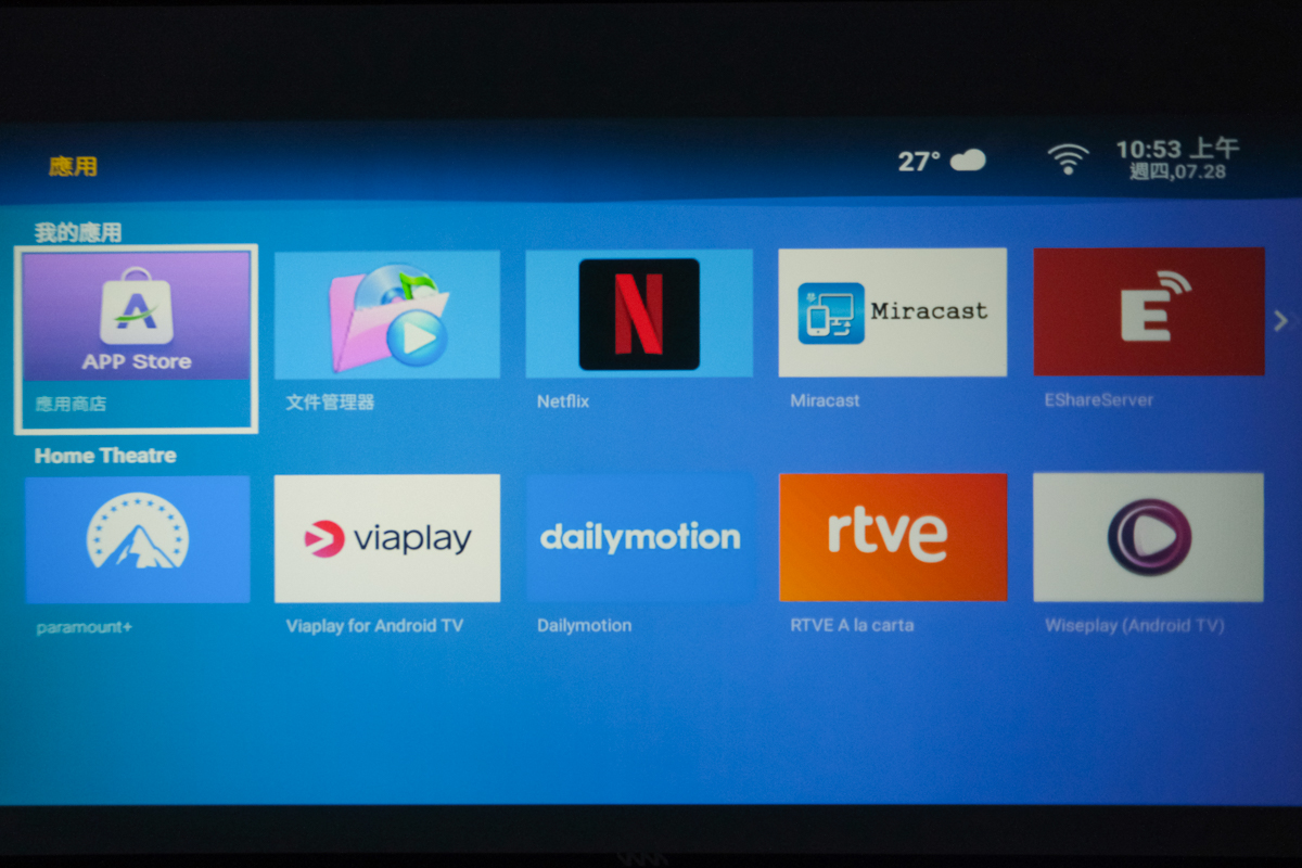當然,現在投影機的內建功能及內容也非常重要,搭載了 Android 系統的 T6R Max 預載了什麼呢?其實基本最常用的 NETFLIX 、YouTube、Disney+ 都在其中,也能透過應用程式商店額外再安裝更多需要的 APP。