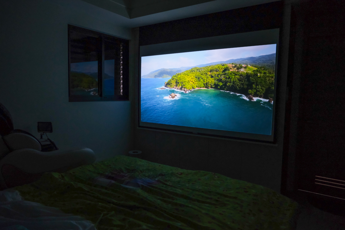 透過投影機看 100 吋的大畫面真的是蠻爽的,雖然投影機的畫質怎樣都比不上電視來的細緻,不過就跟你去電影院看影片一樣,畫面大,眼睛也很專注在暗房中的亮點之中,因此也會更加的沉浸在影片的內容裡,我覺得用之前沒想太多,有了投影機後真的是回不去了。