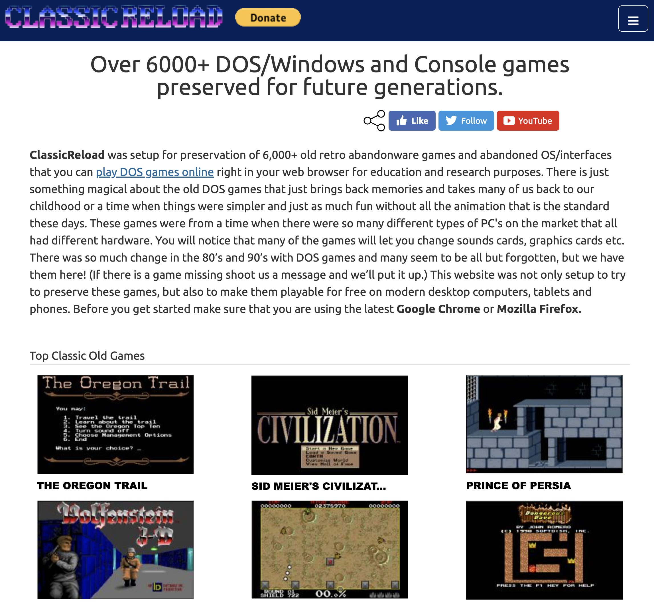 網站:https://classicreload.com/進入網站後,往下拉就會有一些熱門遊戲以及隨機推薦,你如果有想玩的,可以直接用搜尋功能找到想要的。