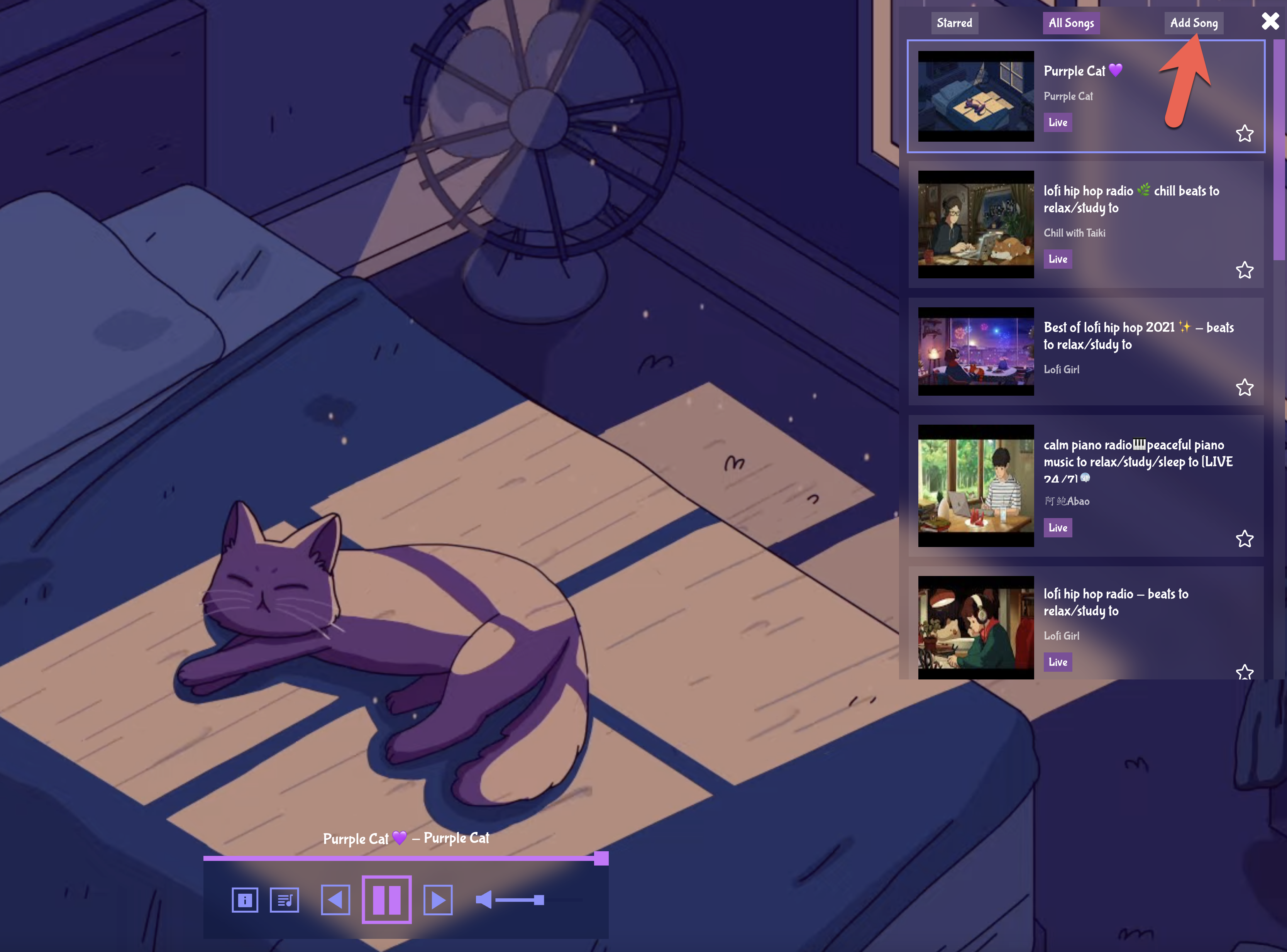 右上角就會顯示播放的清單,在 All Songs 裡會有幾首預設的歌曲,這些是刪不掉的,這時你可以先按 Add Song。