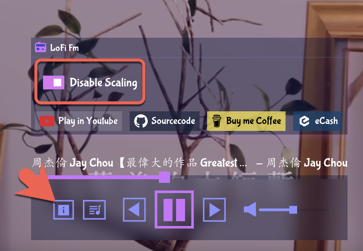 在播放的同時,背景也會播放畫面,如果你不想要讓他自動拉大,可以把 Disable Scaling 開啟,這樣就會保持原比例播放影片了。