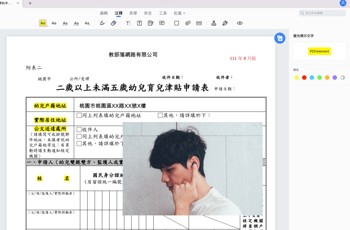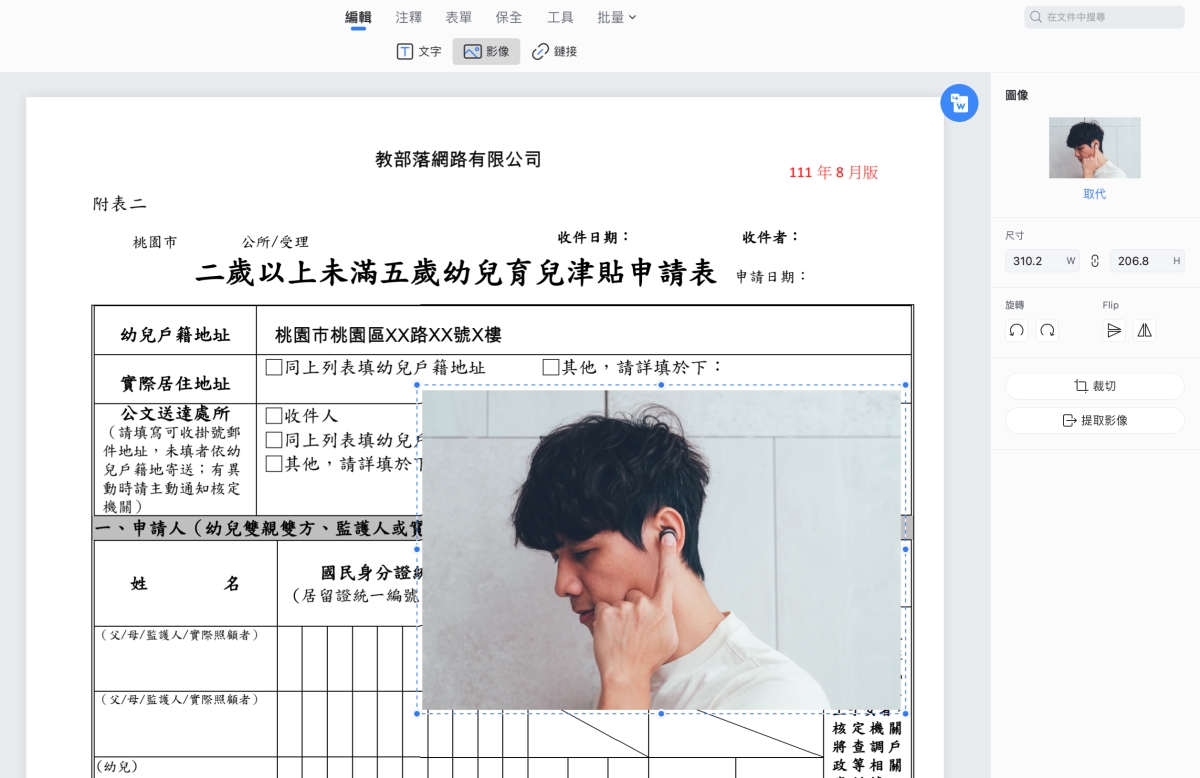 除此之外,也能自行再新增像是文字、影像等內容,直接對 PDF 再編輯。