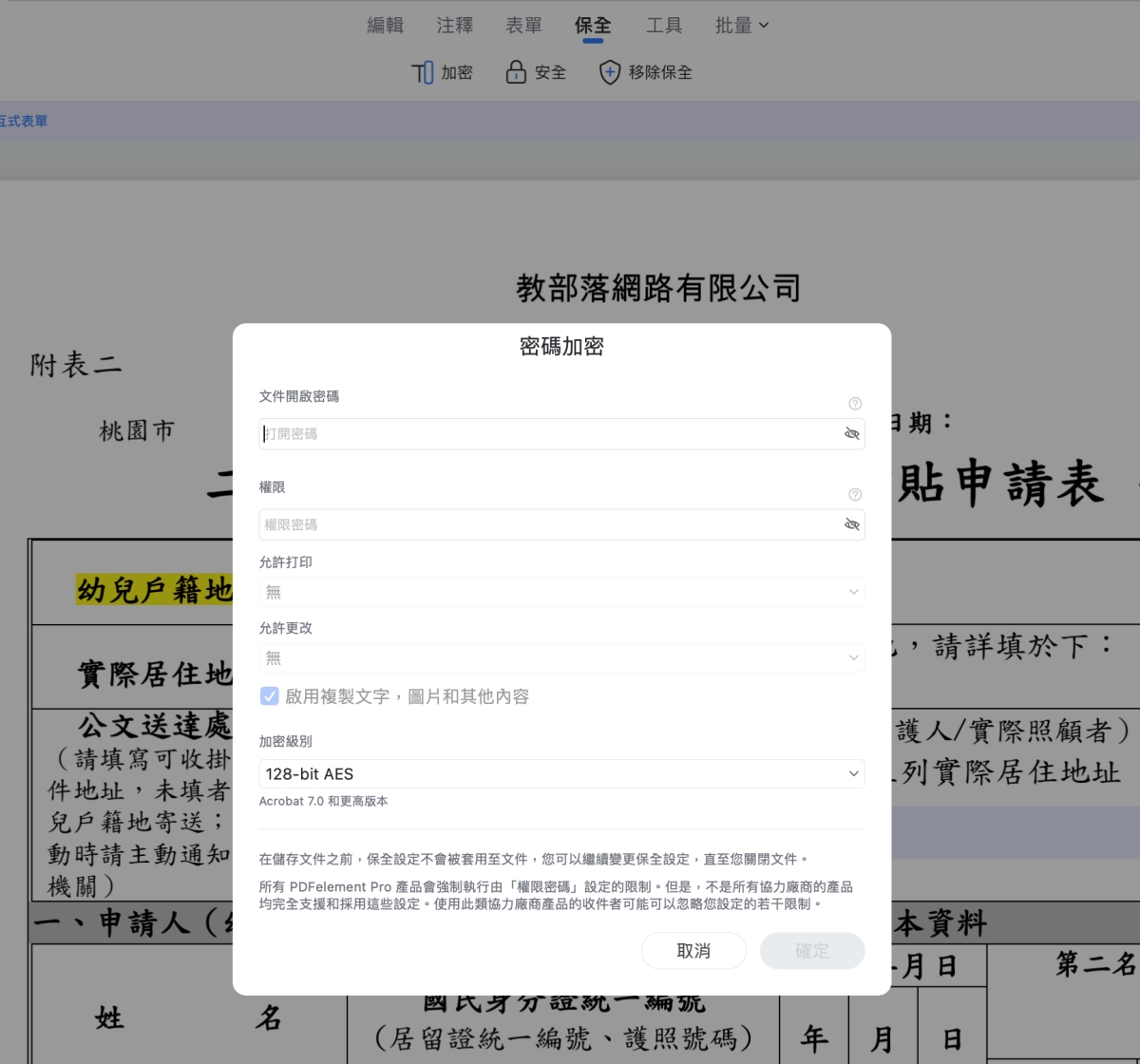 在保全的功能中,包括了針對 PDF 加密,也可以移除。