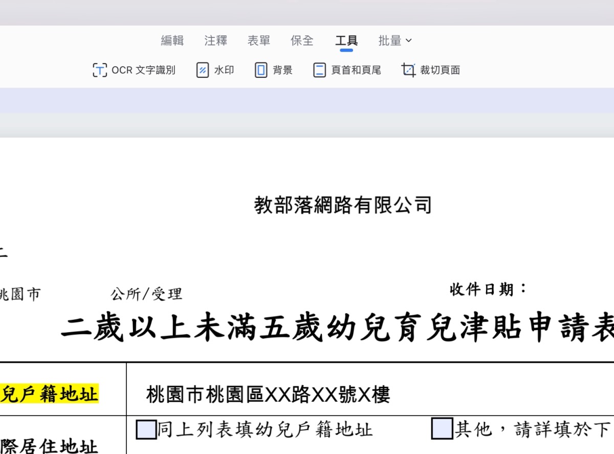 更多工具裡還能使用 OCR 文字識別(如果你的檔案是內置圖片,這功能就非常重要),浮水印、背景、頁首及頁尾,還有裁切頁面。