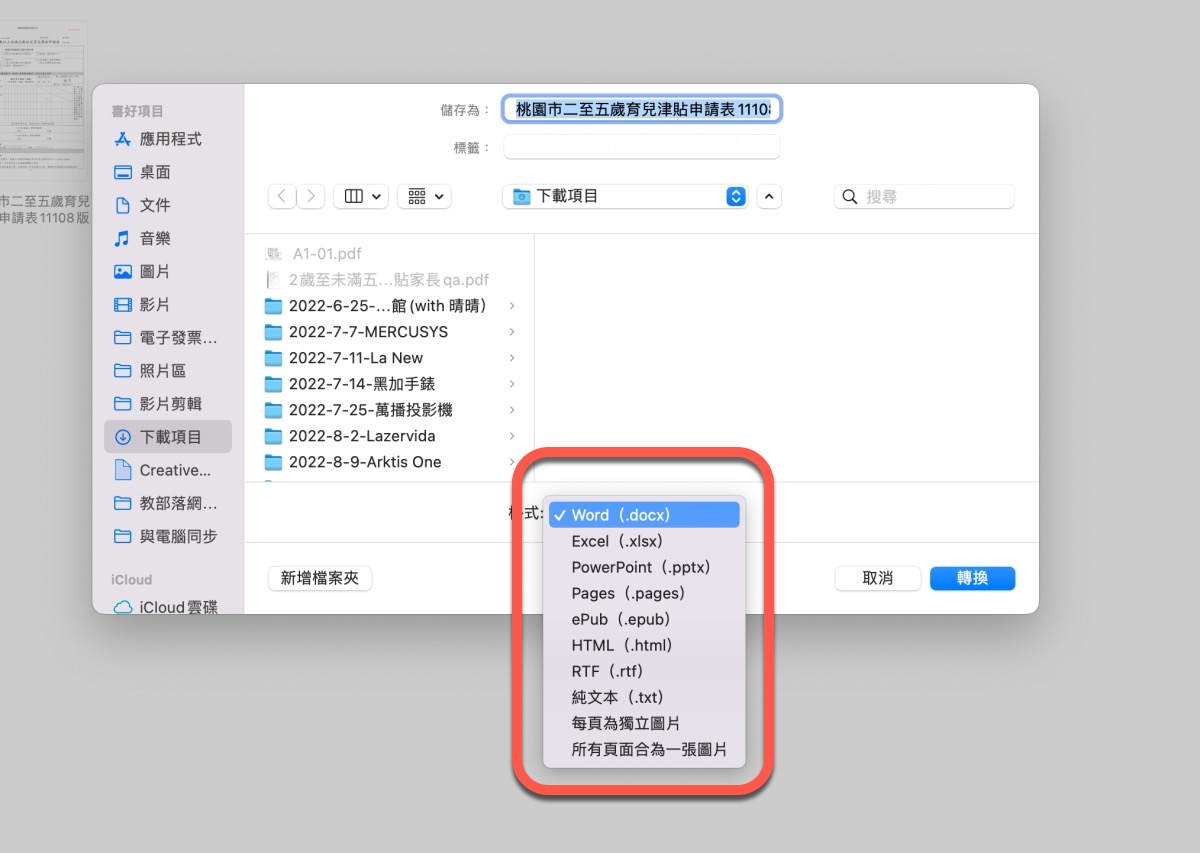 轉檔的功能,也能將現有的 PDF 直接轉成可以編輯的 Word、Excel、PPT 或是 Pages 等各種格式。