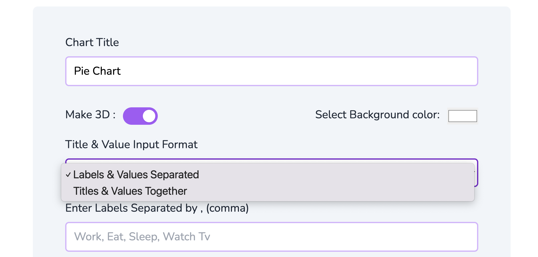 - Labels:文字標籤,也就是每個區塊要用的代表文字