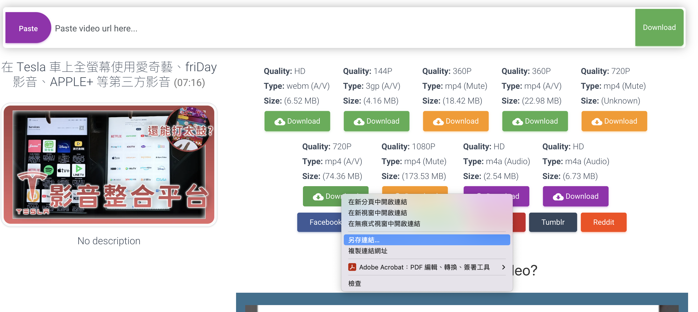 網站:https://pastedownload.com/25進入網頁後,直接將要下載的影音網址貼上來,也不用按 Download,有支援的就會就自動偵測,然後開始分析。