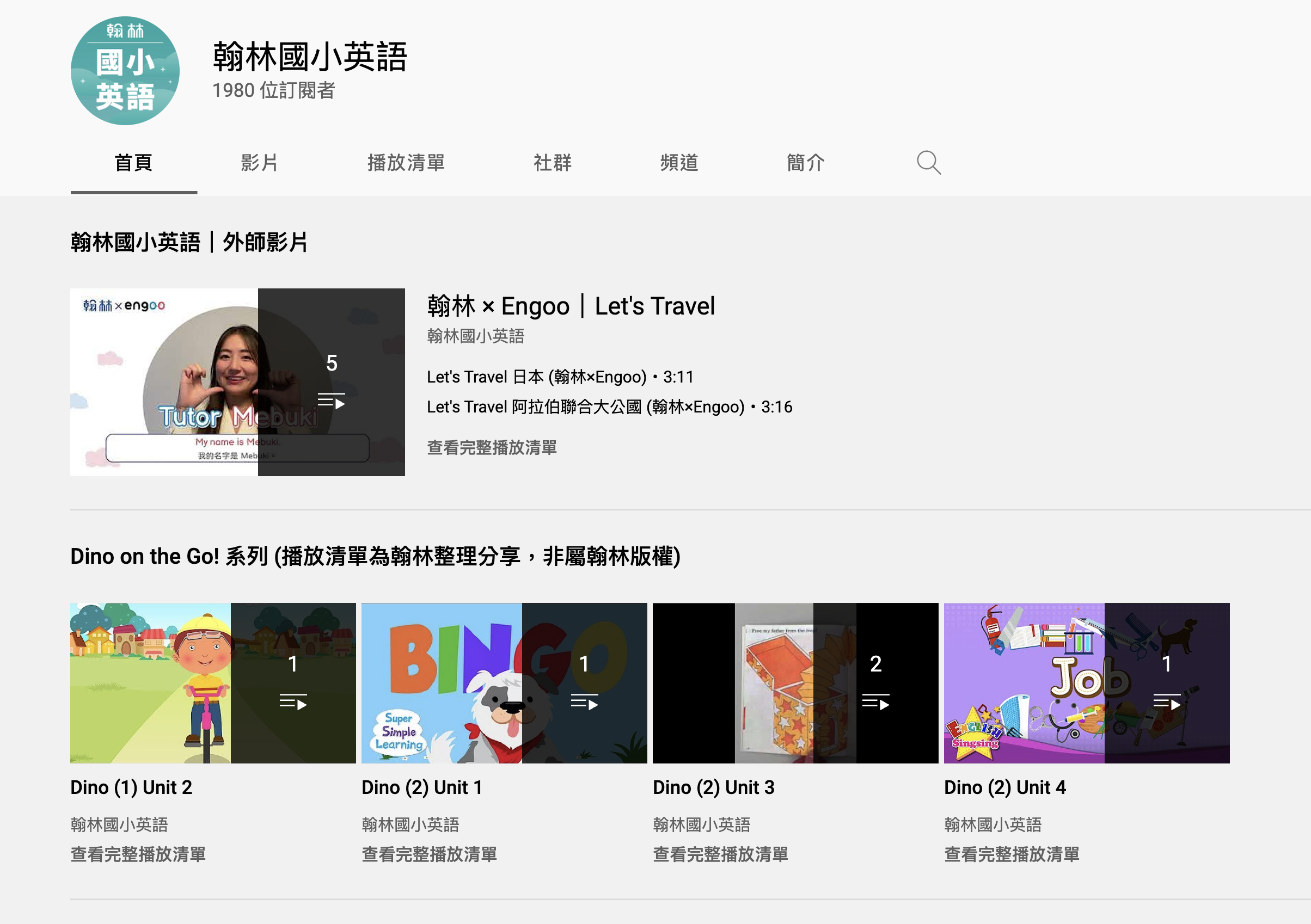 另外也有翰林自己的國小英語 YouTube 頻道,內容其實還蠻豐富的,算是可以做為額外練習英文的機會,家長們也可以和小朋友一起共學,多一些親子時光。