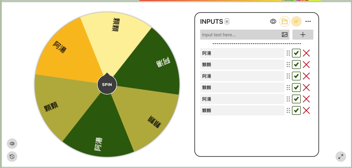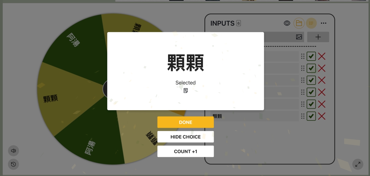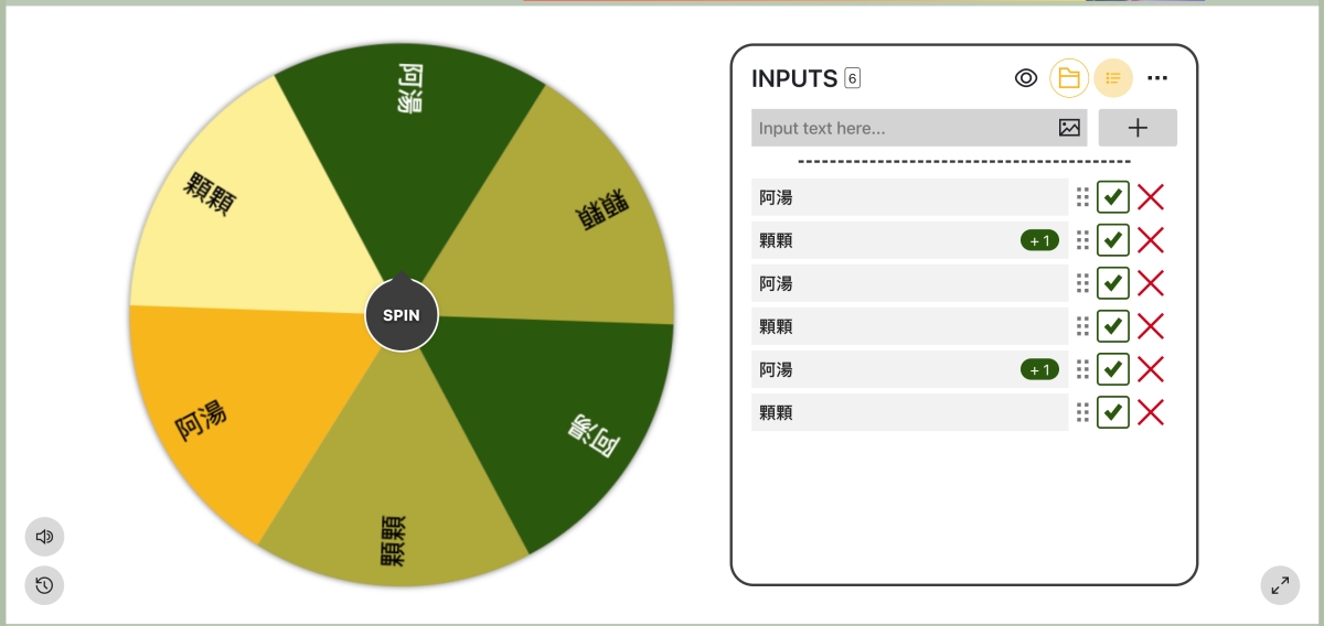 首頁 › 線上工具/服務 › Picker Wheel - 輪盤抽籤工具,輸入想要抽籤的內容立刻開轉 Picker Wheel - 輪盤抽籤工具,輸入想要抽籤的內容立刻開轉 發佈日期:2022/9/27 作者:阿湯 分類:線上工具/服務 又要抽籤了嗎?如果真的用紙做成一個輪盤來抽籤應該有點浪費吧,有些線上抽籤工具也需要註冊登入才能使用,其實對偶而使用來說不是那麼方便,今天來分享個 Picker Whell 輪盤抽籤工具,直接輸入各種選項後,按一下就會開始轉動隨機抽籤,不需要註冊,除了文字外也能用圖片,抽過的還能記錄下來,相當的方便,不僅可以用在抽籤、抽獎,午餐不知道要吃什麼時也可以用這個來決定啦。 Picker Wheel - 輪盤抽籤工具 網站:https://pickerwheel.com/ 進入網站後,直接在右邊逐項輸入要抽籤的項目,可以文字或圖片。 弄好後,按一下中間的 SPIN。 然後就會抽出來囉,按 下 Count +1 就可以記錄下誰被抽過了。 就會像這樣顯示在右邊有 +1,快去試看看吧。