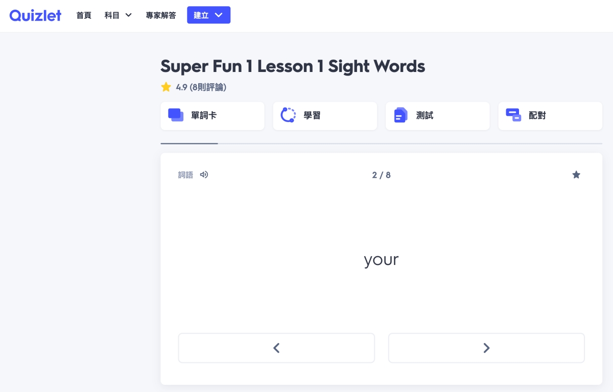 這裡的主要是結合 Quizlet 平台製作了一些互動式字卡。