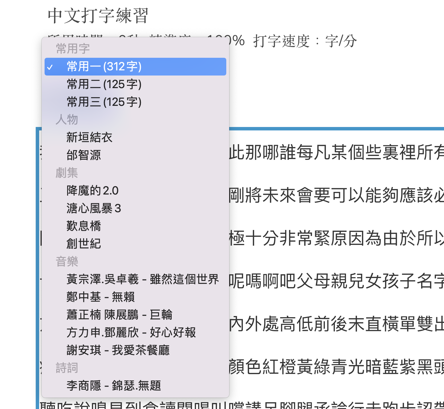 打字練習的範本有不少可以選擇,但阿湯主要建議可以多練習常用字一、二、三,是平常用到最多的字。