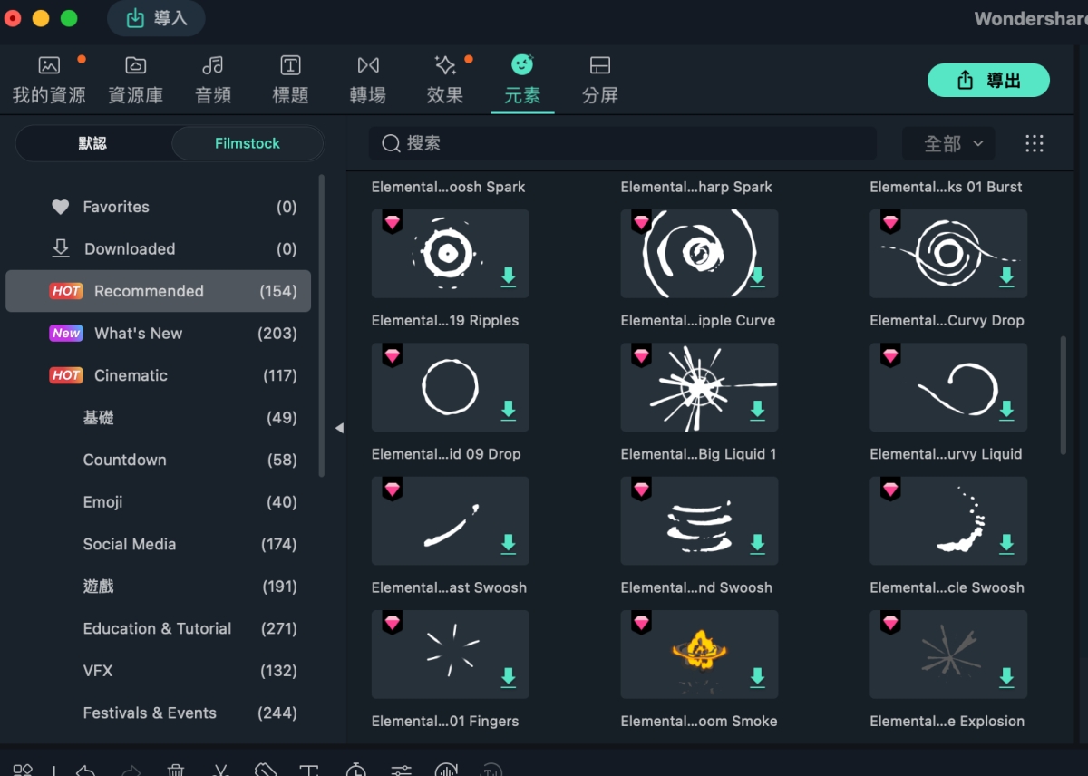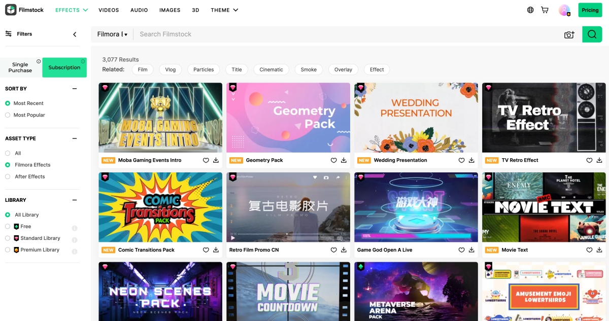 除了上述提到的功能、特效外,如果你真的還是不夠你使用,在官方的 Filmstock 市集裡,還有超多讓你逛不完的各種特效、字幕、音樂等可以再額外購買、下載,相當的豐富,每個月也只要再加一點費用就可以無限制的下載。