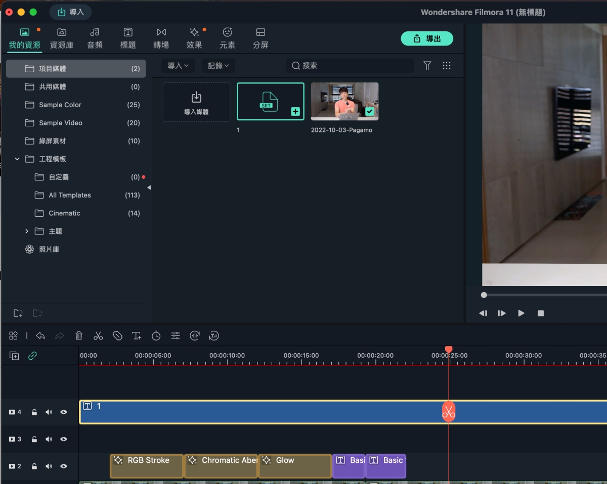 至於很多影片都有很多可愛或有質感的標題,當然,內建也有超多可以直接套用,直接修改文字就好,很簡單就可以將文字新增至影片中了,唯一要注意的是,這內建的普遍是針對英文字型,如果你打上中文的話,文字風格會是不一樣的,這時你也可以自己準備一些想用的中文字型來套用就好。