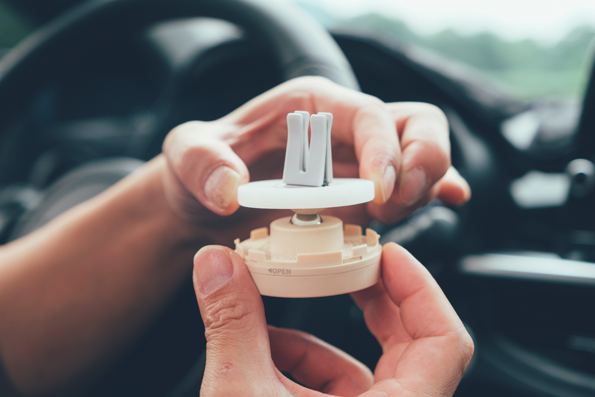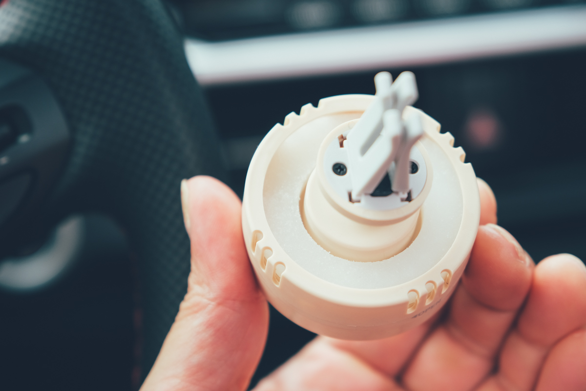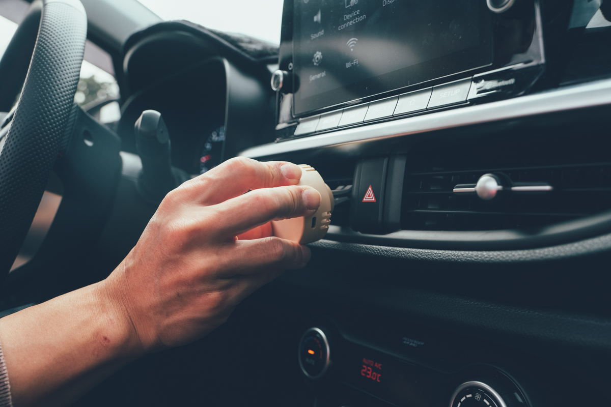 在開始開箱之前先跟大家分享一下顆老大現在車上的配置,首先在冷氣口處放了個擴香膠囊,也是採用磁吸的方式,讓香味隨著冷氣吹送出來。