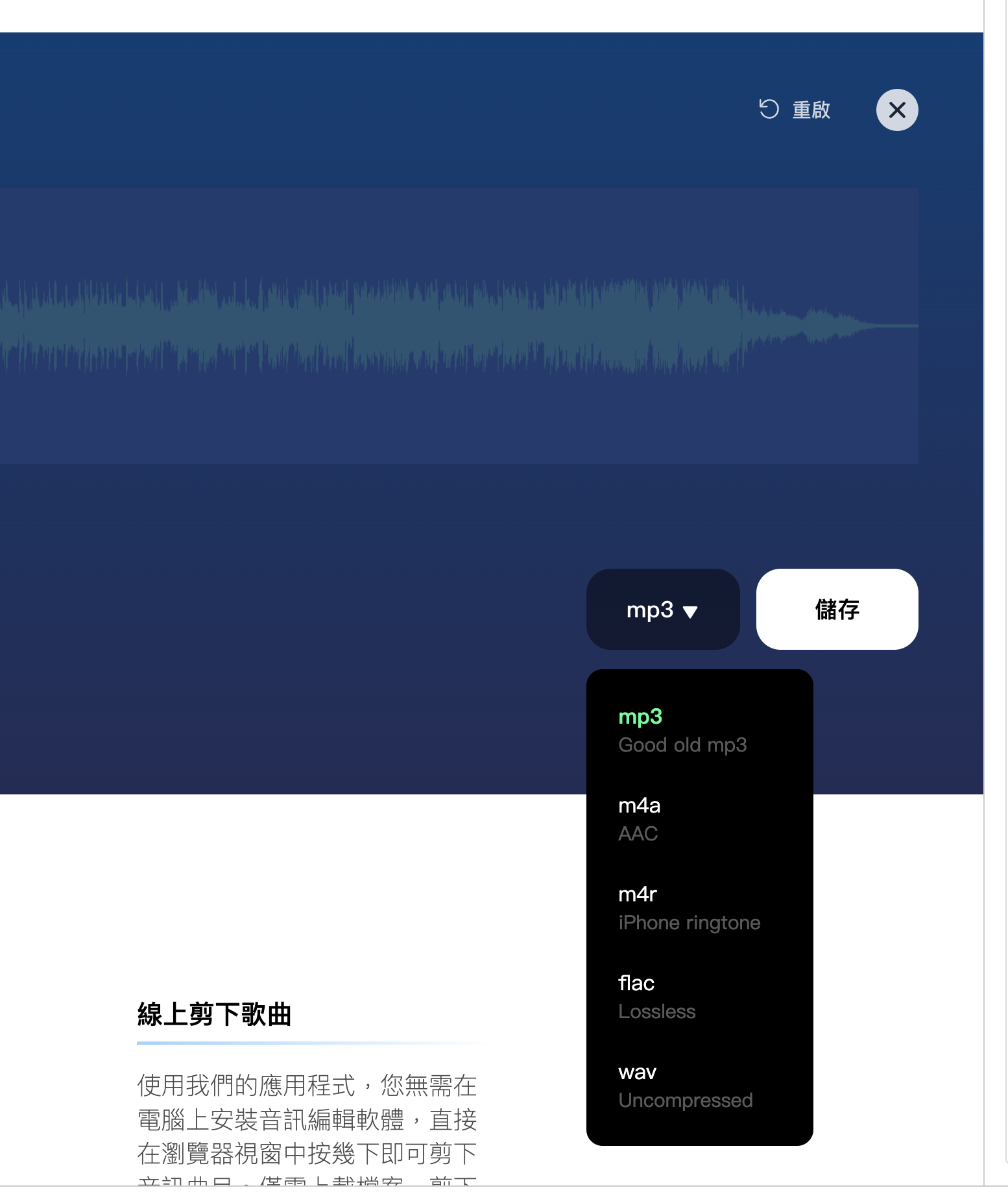 線上音樂剪輯工具 Audio Cutter